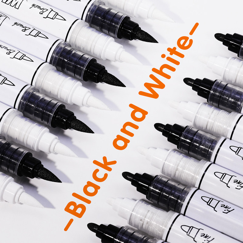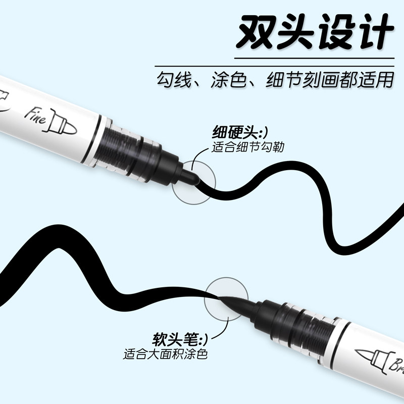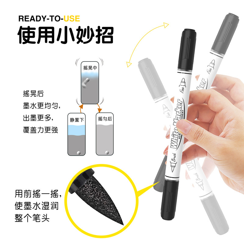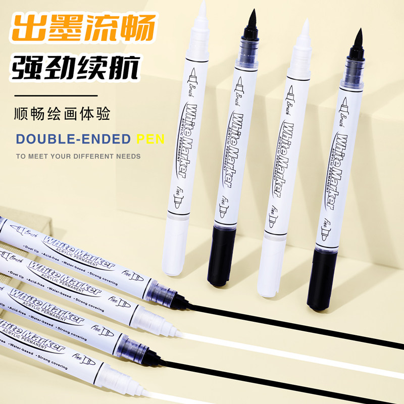 📚 白色丙烯马克笔提亮高光笔双头美术专用小学生拍立得相纸涂鸦笔黑色签名笔勾线笔直液式记号笔软头防水不掉色