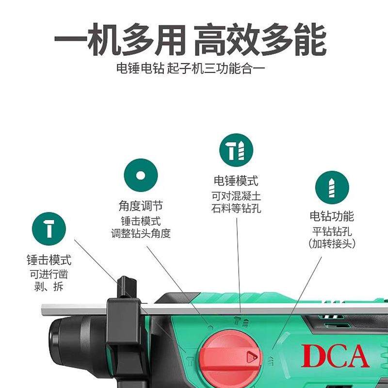 📚 DCA充电电锤多功能无刷22/04-24工业级混凝土电镐锤水电打孔工具