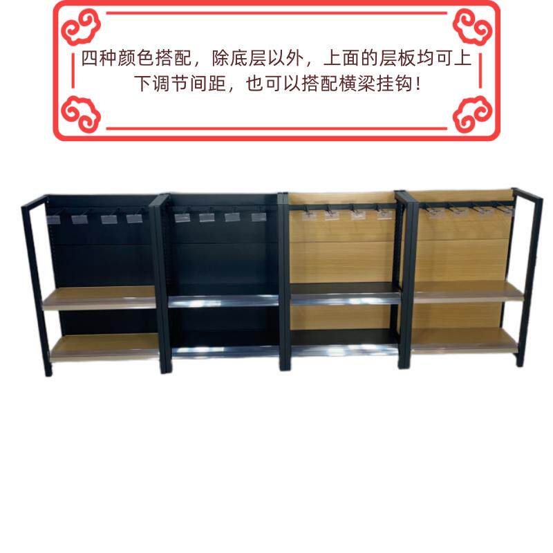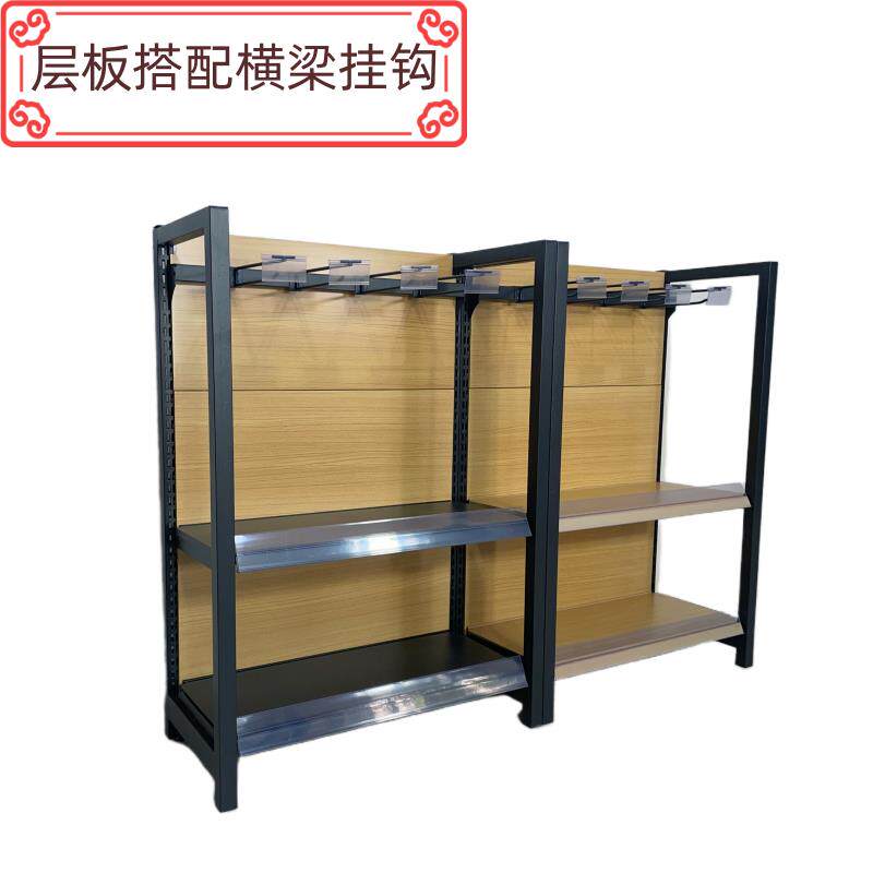 📚 超市货架挂钩展示架便利店小卖部置物架文具母婴零食商店四柱木纹