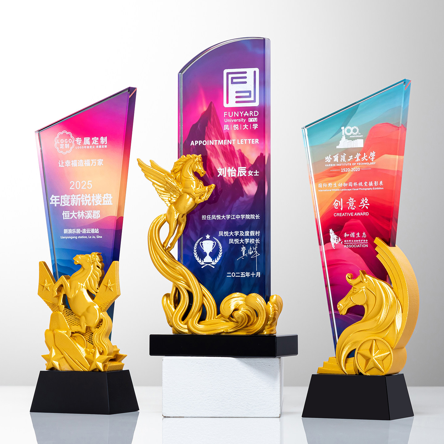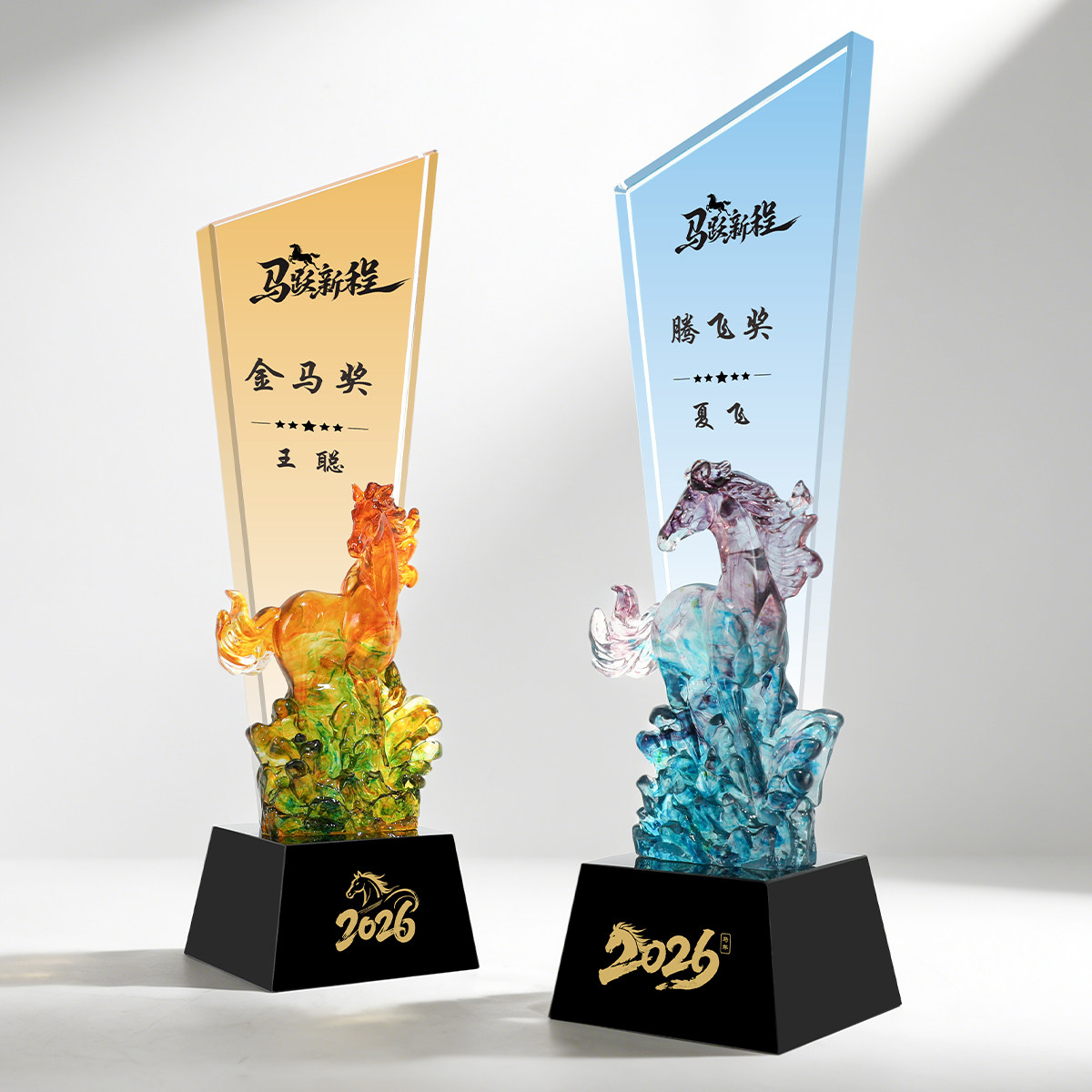 📚 创意骏马水晶奖杯奖牌定制金属马造型年会优秀员工团队销冠比赛评比金银铜荣誉颁奖纪念品
