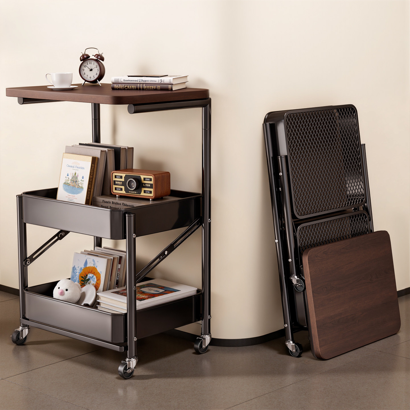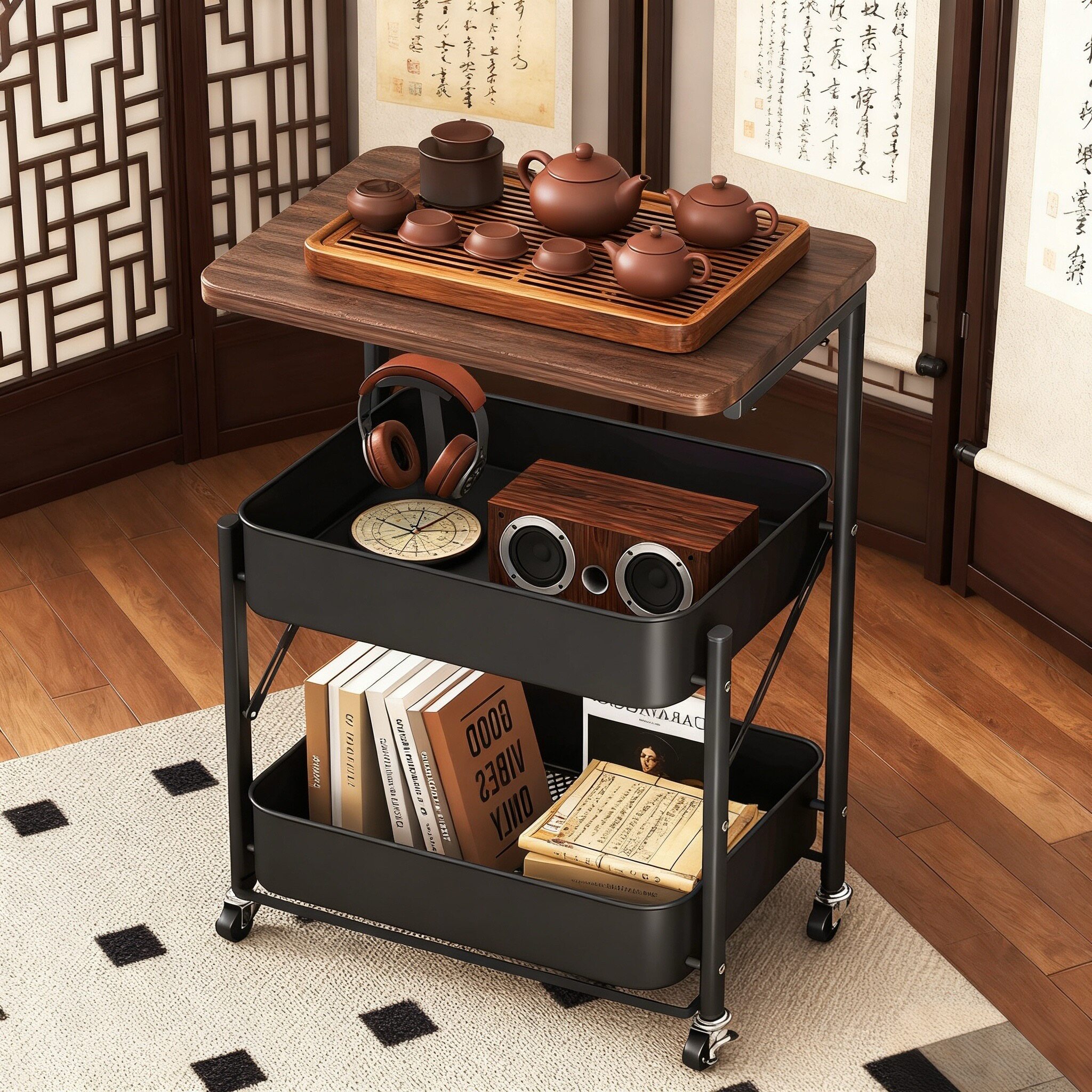 📚 中古小推车置物架落地零食可移动折叠多层收纳架放床头柜边茶几