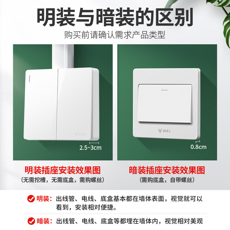 📚 公牛明装双开开关面板电源灯按钮单控明线二开两开墙壁超薄 家用