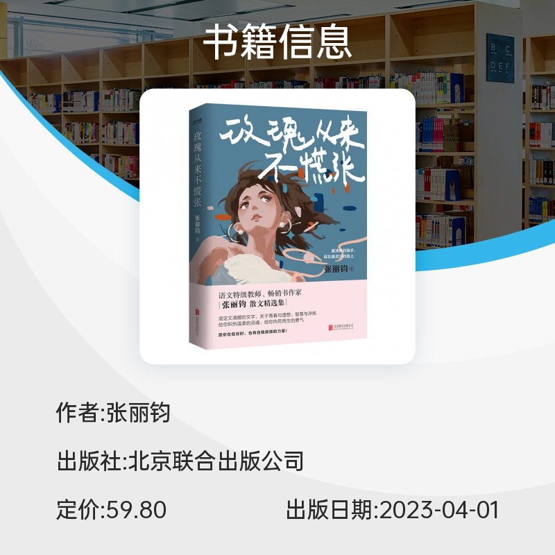 29¥ MF937 ES2LU7oCIUR¥ https://m.tb.cn/h.7JCWvL2 玫瑰从来不慌张 教师张丽钧的人间清醒散文集 书中文章 --------------------- 【原售价】44元 【现售价】26.4元。