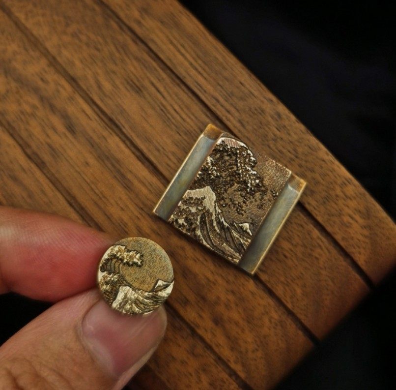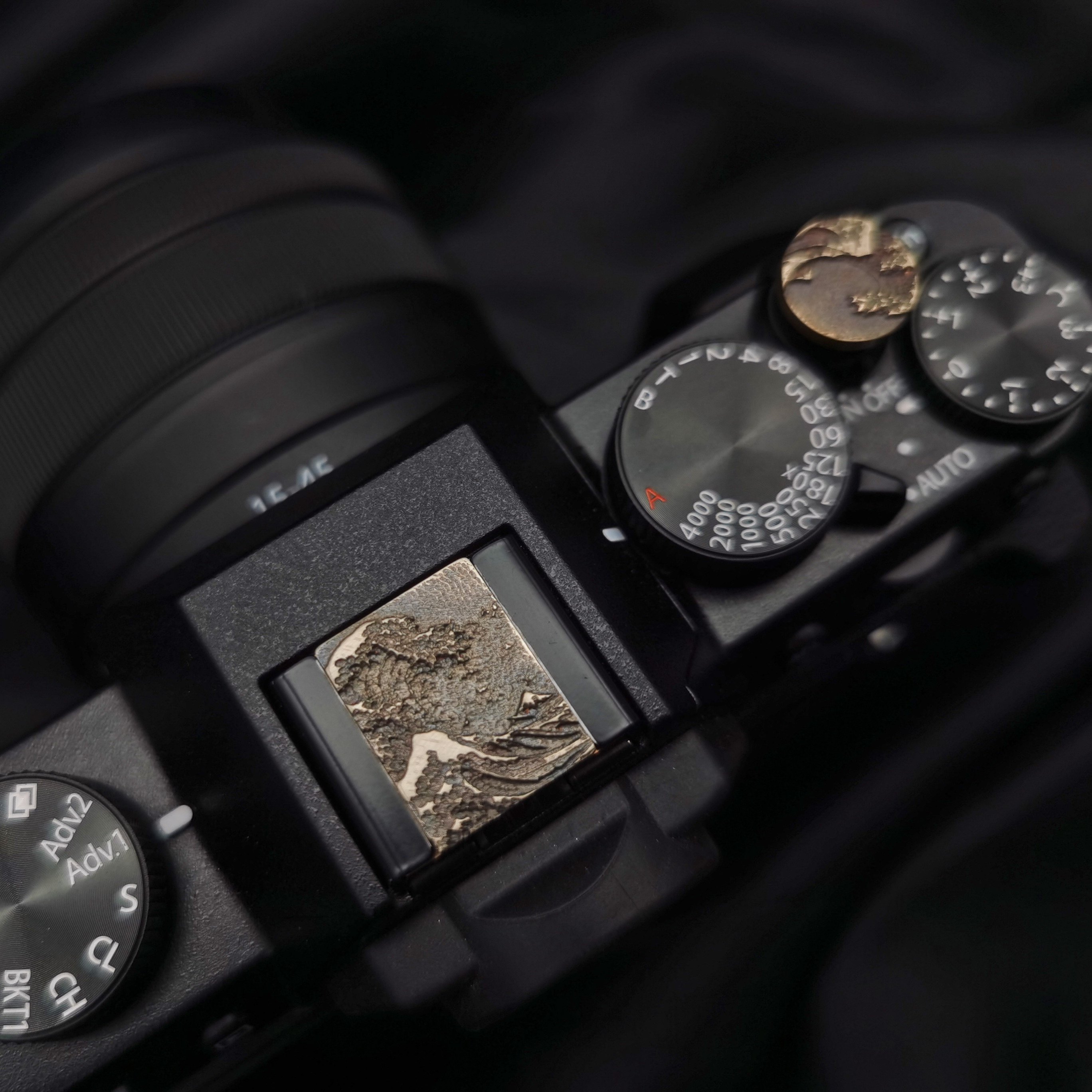 📚 热靴盖快门按钮浮世绘海浪黄铜复古浮雕适用于富士x100vi xt5尼康