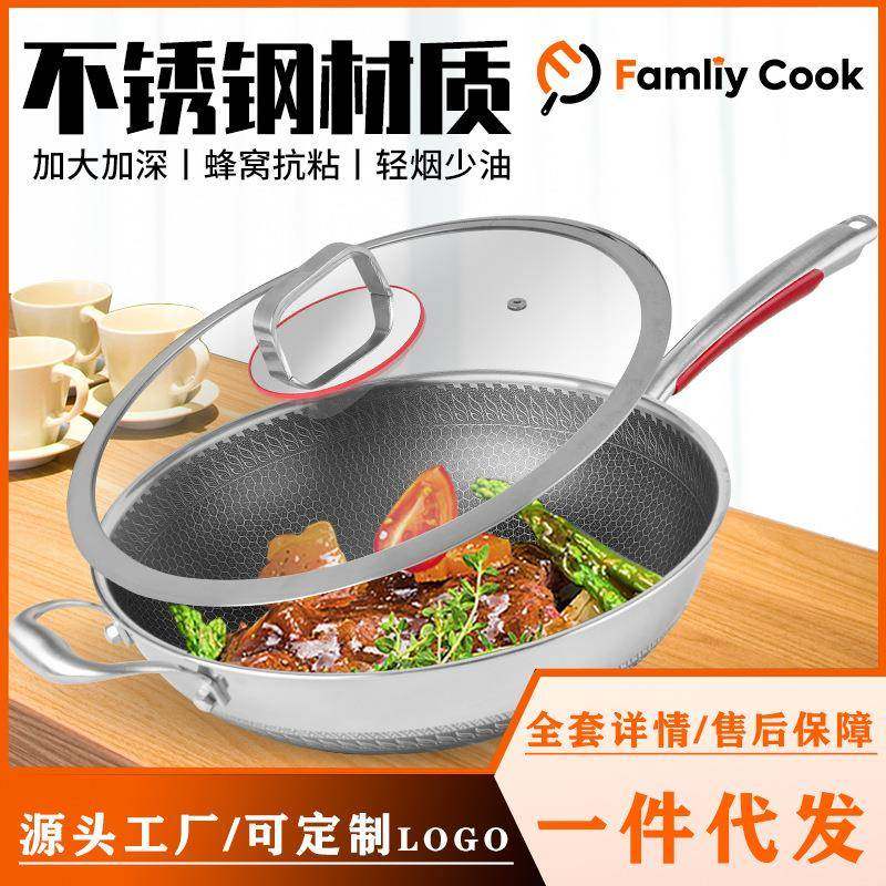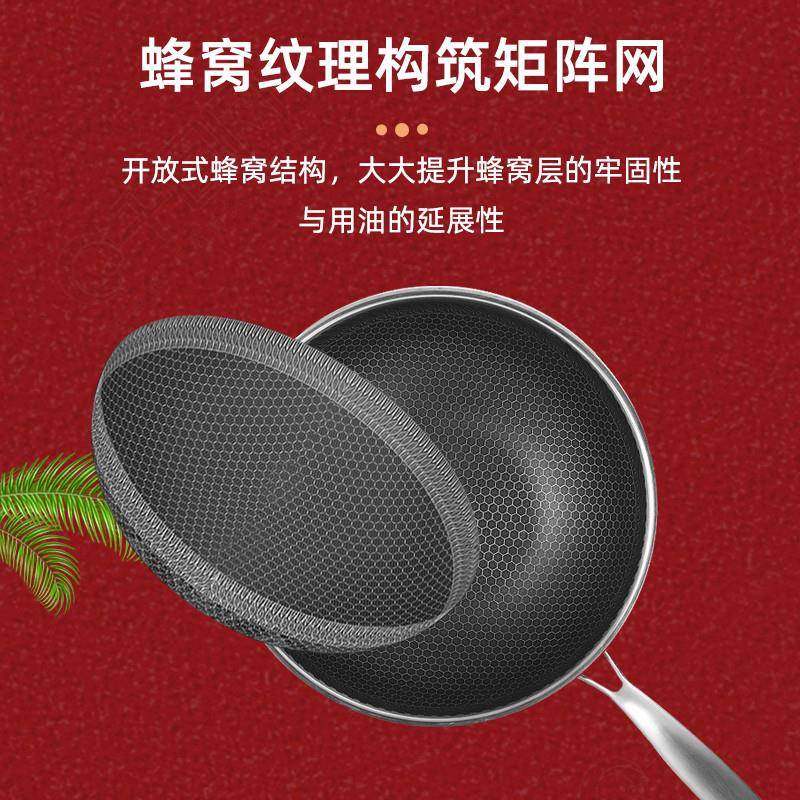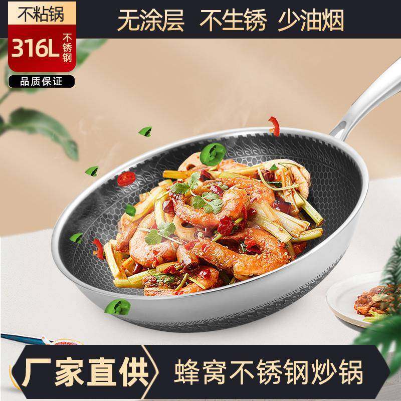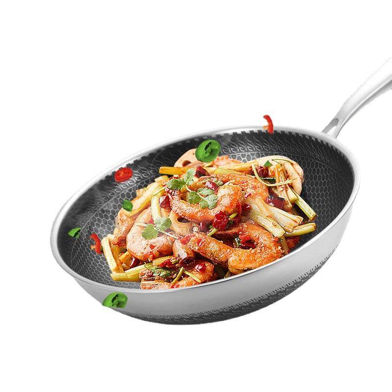 📚 永康不锈钢炒锅蜂窝无涂层无油烟家用炒菜锅电磁炉通用