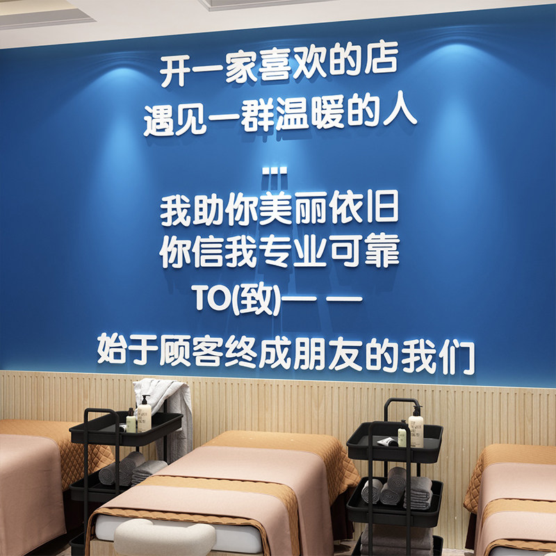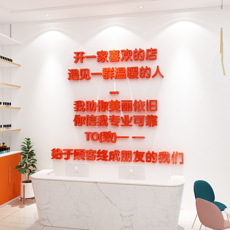 📚 网红美容院装饰氛围布置美甲店理发吧台文化背景形象墙贴纸高级感