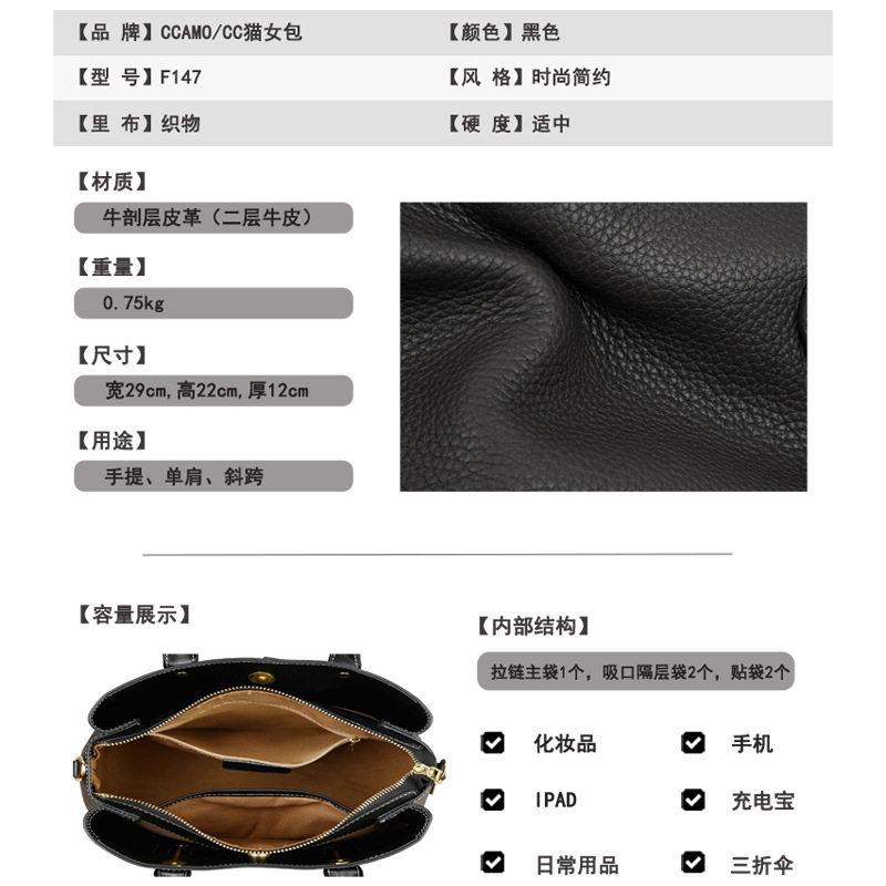 📚 牛皮包包女款大容量手提包女秋冬天包包感通勤女包洋气单肩包