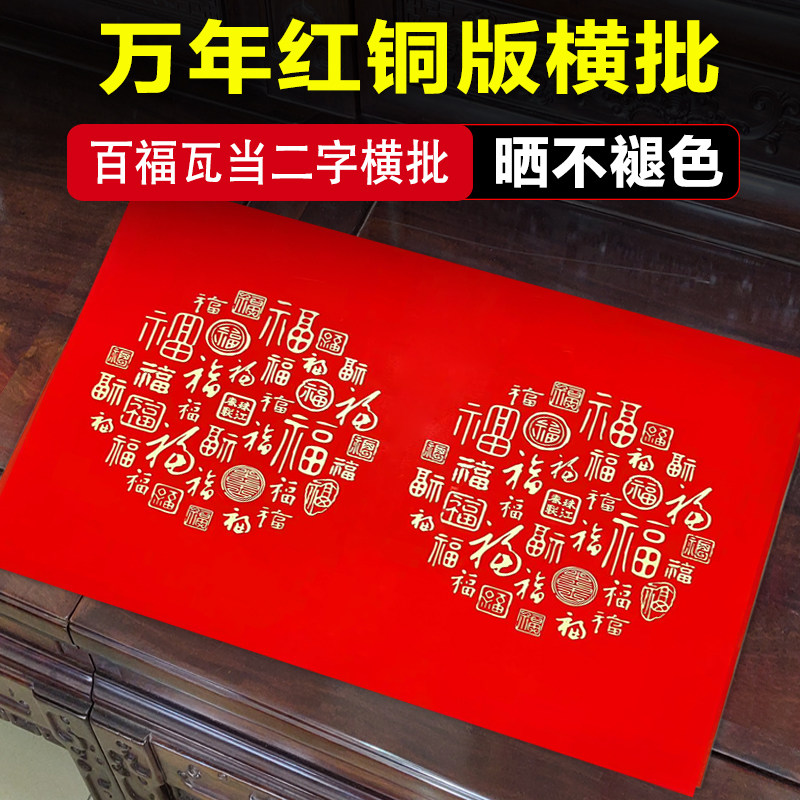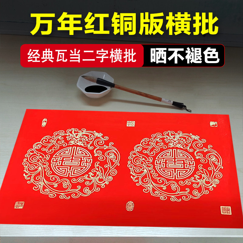 📚 万年红铜版纸横批对联二字加厚手写空白春联经典瓦当四字大红纸