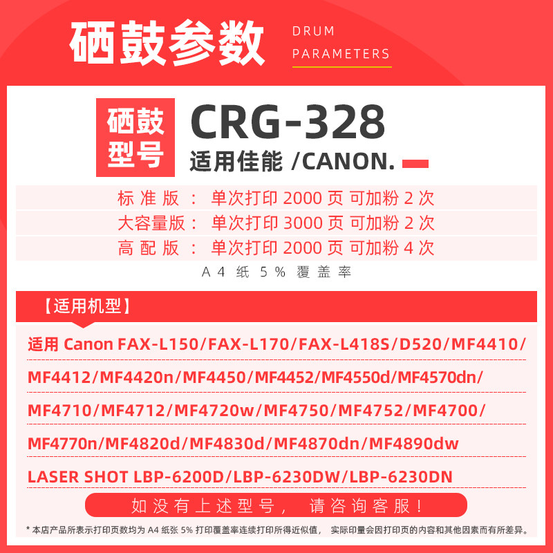 📚 适用佳能MF4712硒鼓CGR328打印机硒鼓MF4752 4700 4452 4410晒鼓