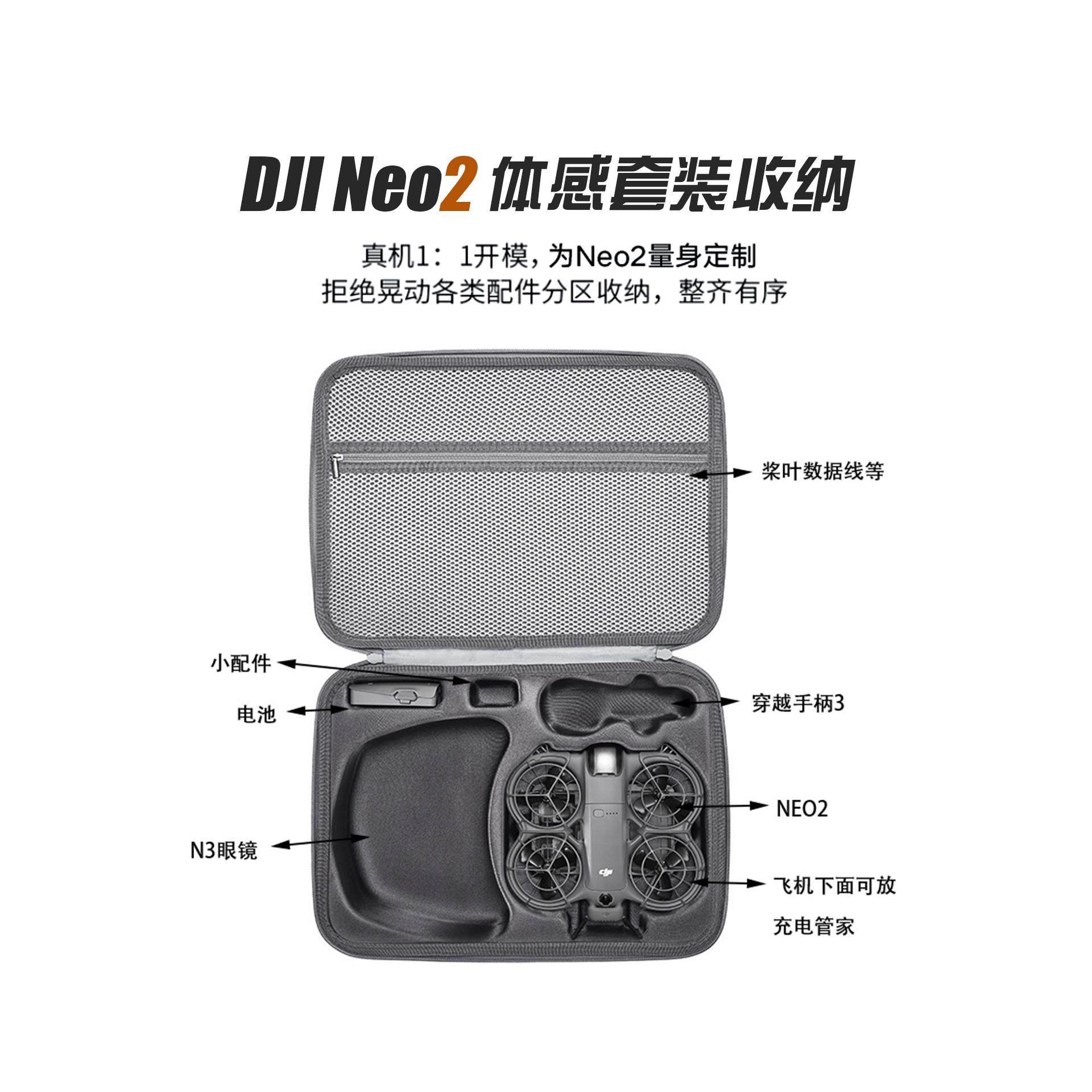 📚 适用大疆DJI Neo2配件收纳包安全防爆箱neo2畅飞套装单机掌上无人机户外单肩斜挎包手提防水摔运输电池充电器