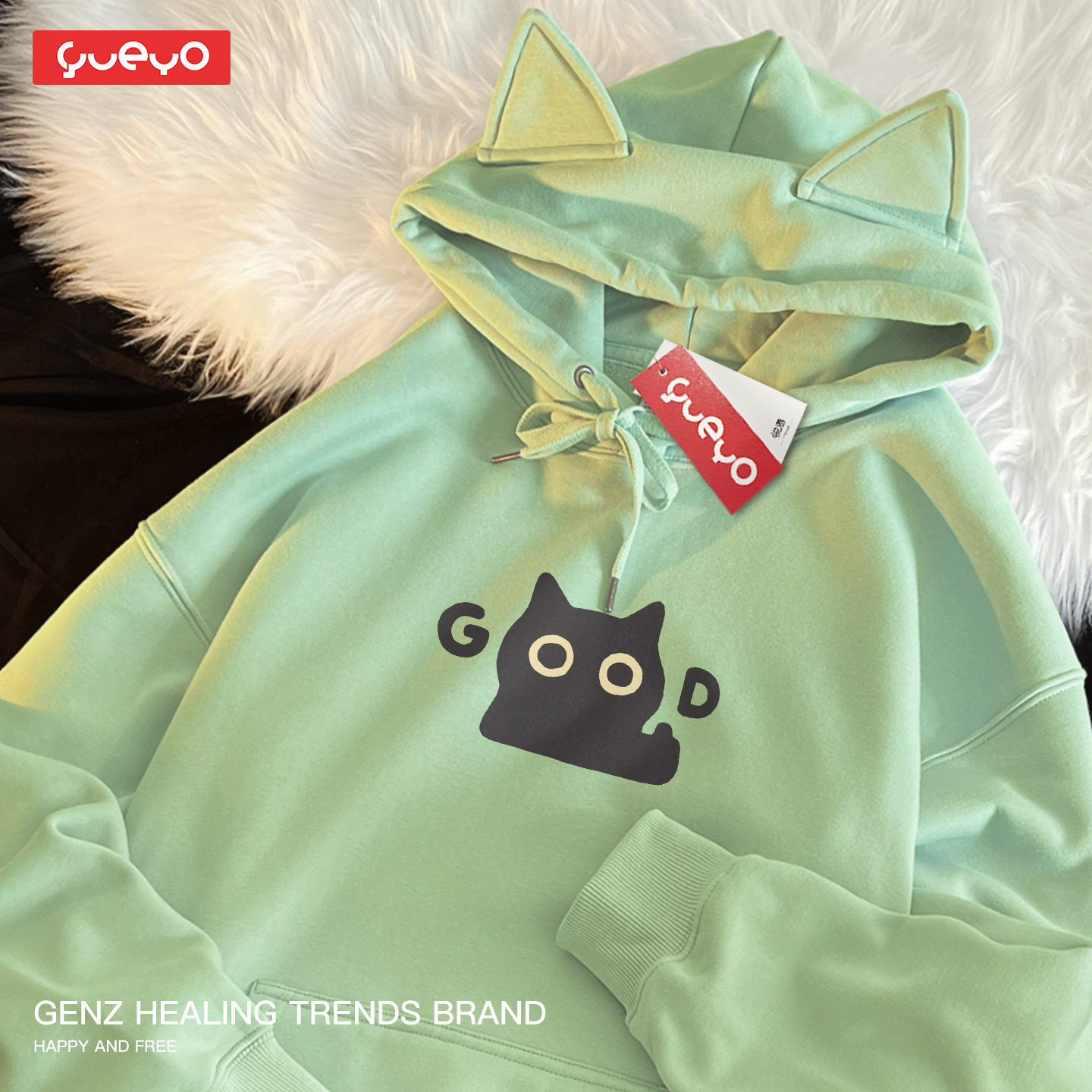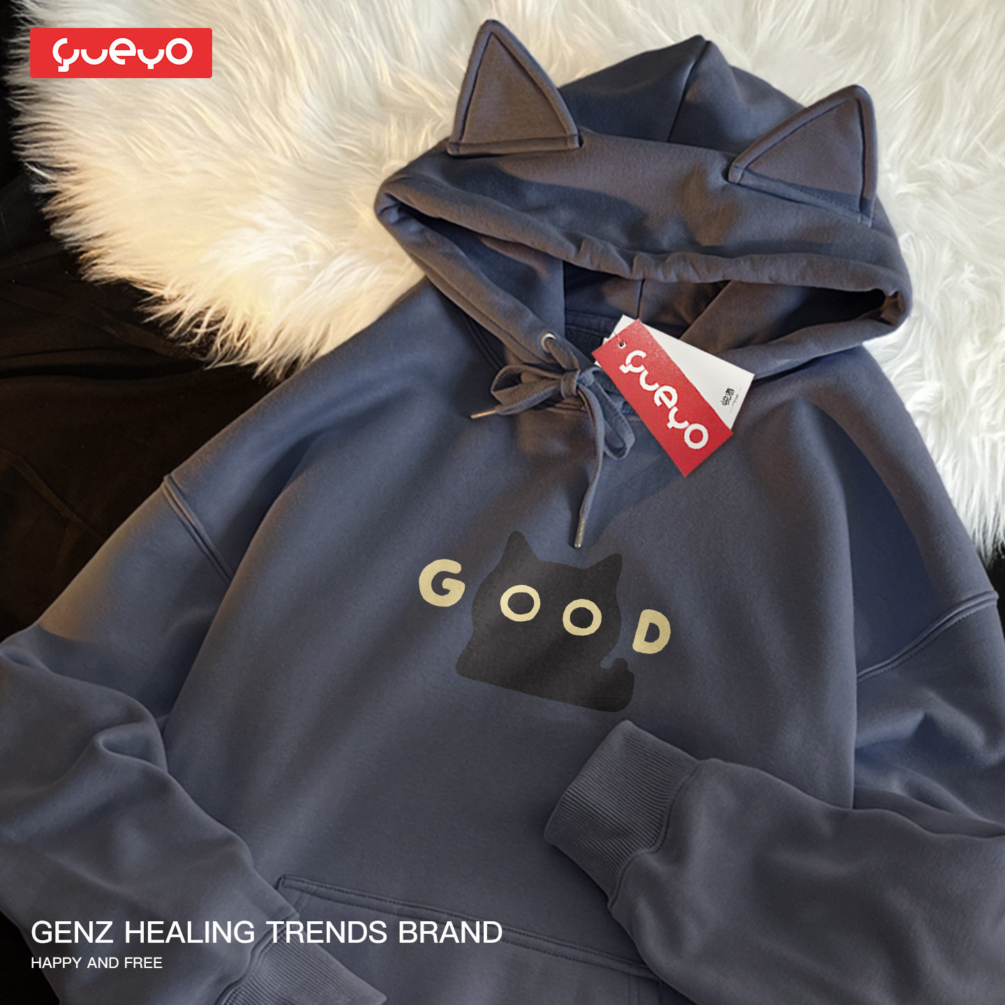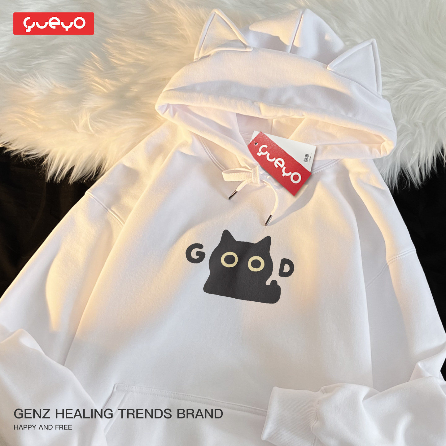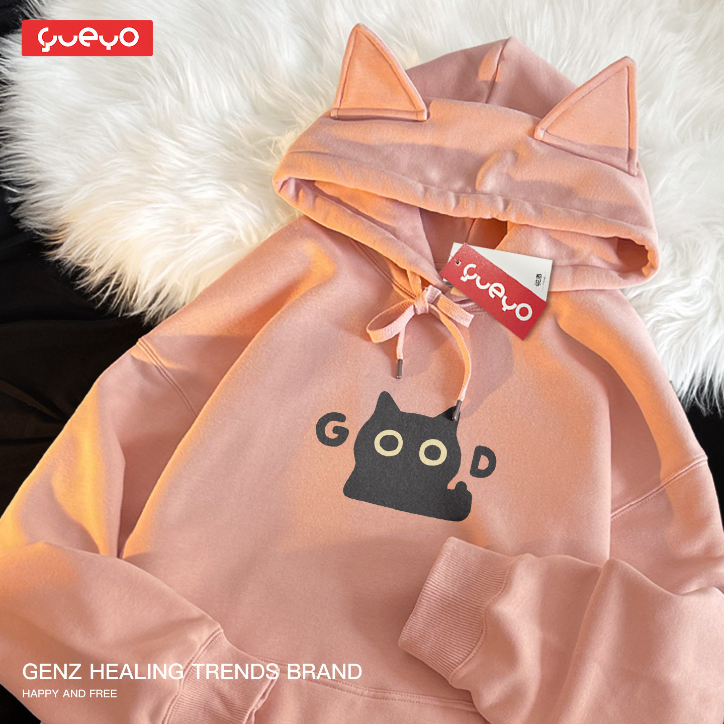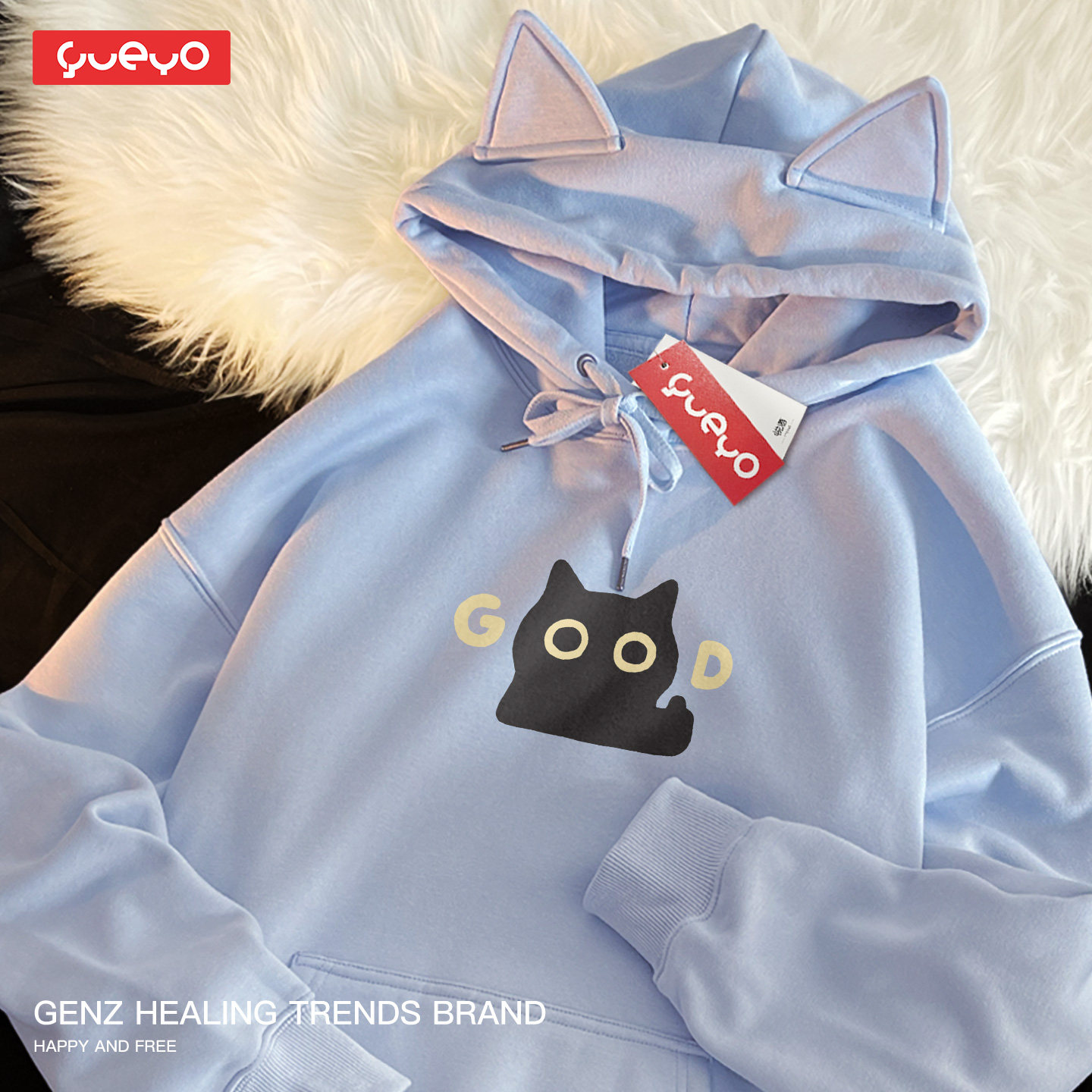 📚 悦游 good黑猫 原创宽松加绒猫耳连帽卫衣潮流原创卡通可爱猫咪潮