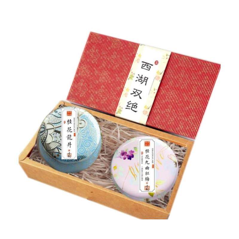 📚 新茶杭州本地特产西湖双绝桂花龙井茶+桂花九曲红梅红茶伴手礼