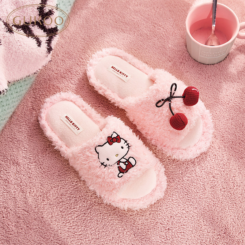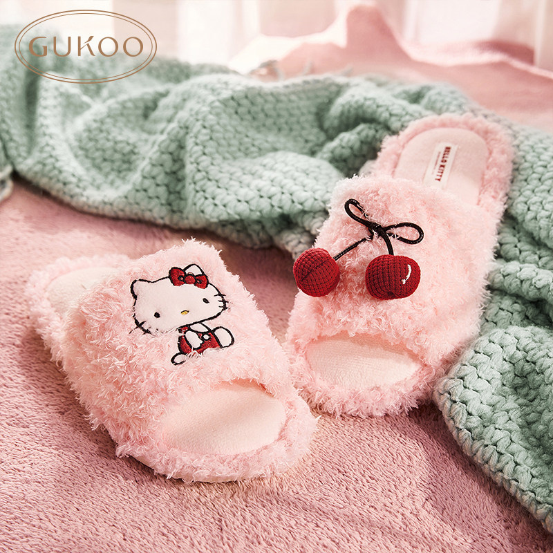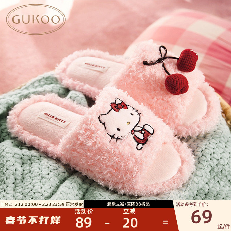 📚 Gukoo/果壳HelloKitty联名四季拖鞋女毛绒刺绣舒适女士家居拖鞋