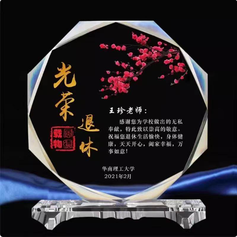 📚 水晶奖杯感谢牌定做光荣退休牌荣誉纪念品老师教师节奖牌定制刻字