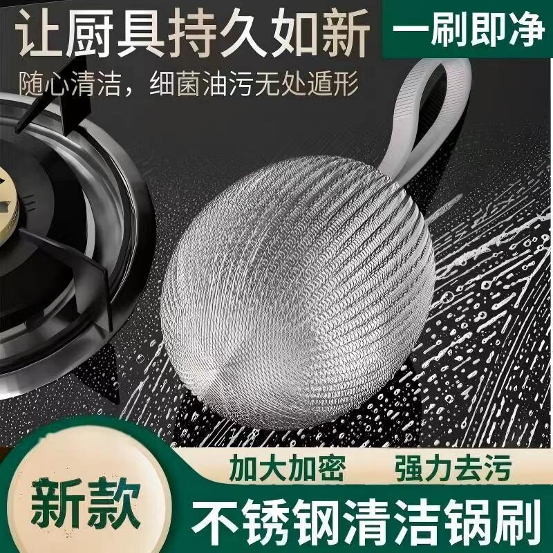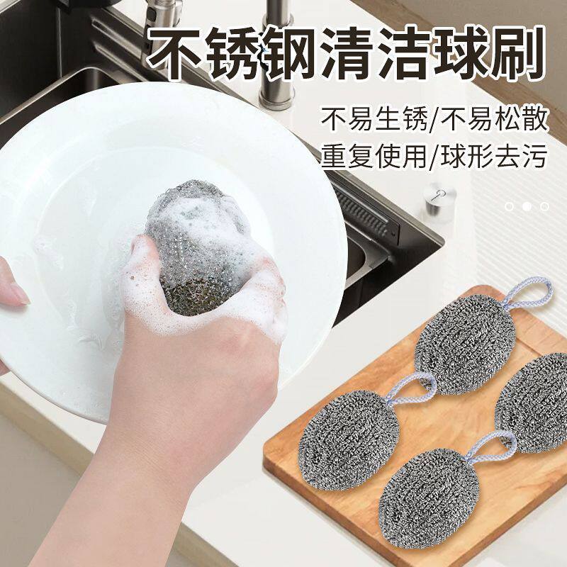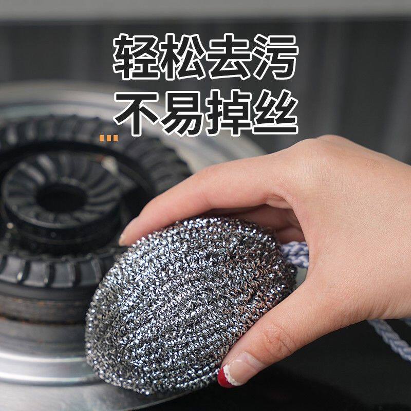📚 自带挂绳钢丝球不锈钢清洁球厨房用刷锅洗碗神器家用不掉屑钢丝球