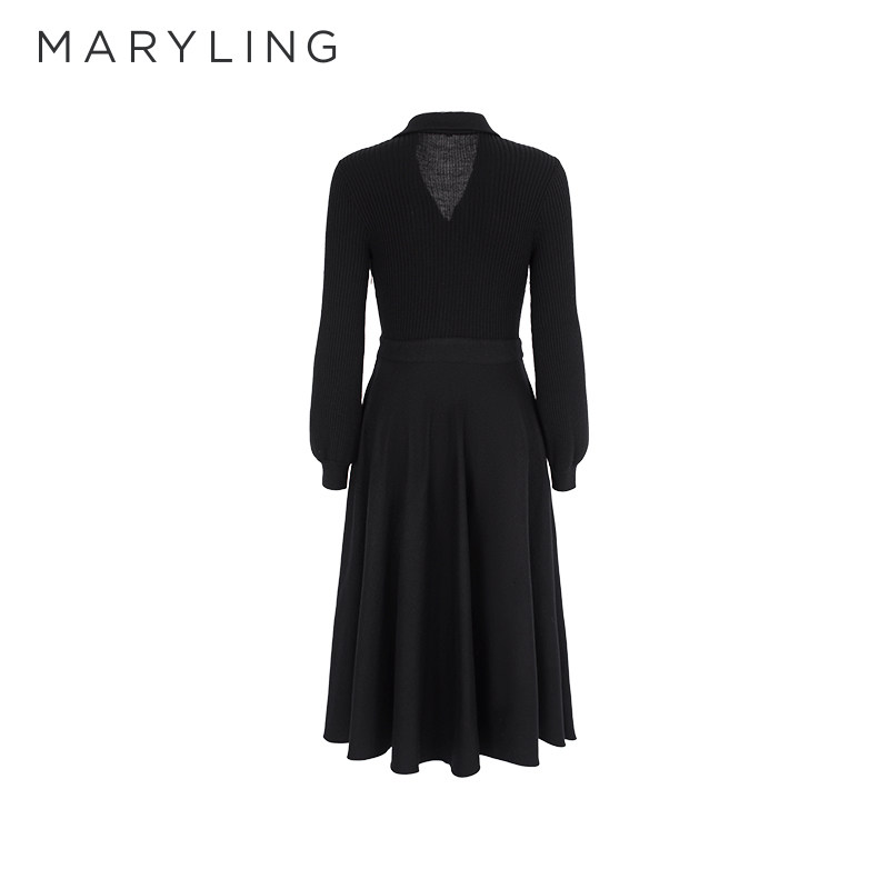 📚 MARYLING玛俪琳初冬新品黑色衬衣领针梭织连衣裙A1EHW62500