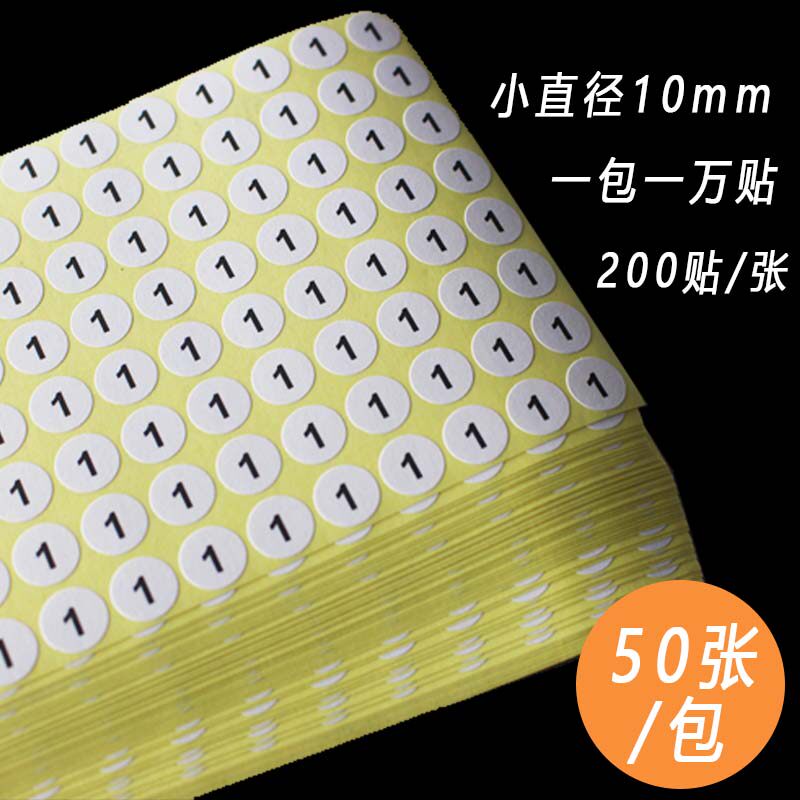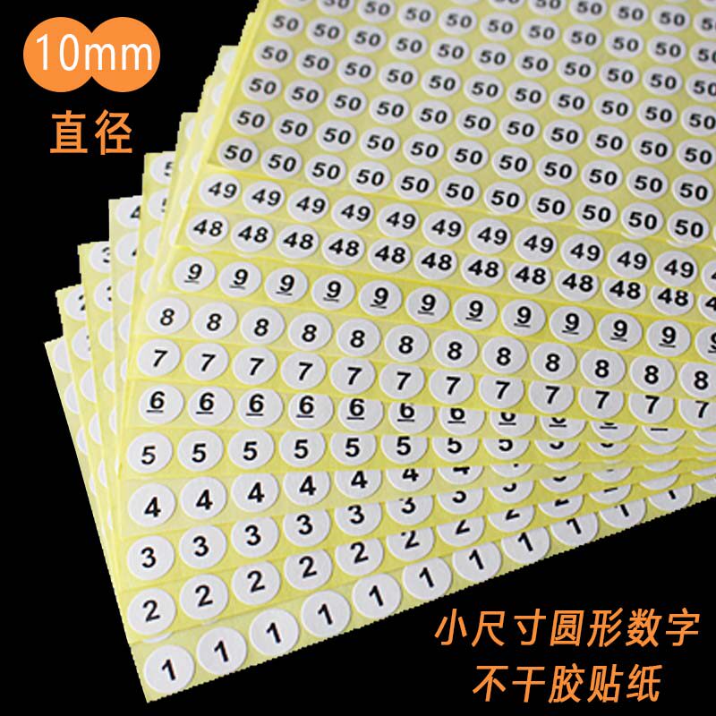 📚 数字号码贴纸尺码标签圆形10mm序号编号不干胶标签1-50工号标签贴
