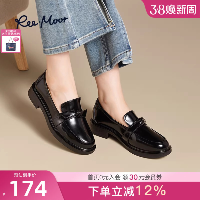 📚 REEMOOR睿慕2025秋季新款厚底真皮乐福鞋英伦风黑色小皮鞋女鞋