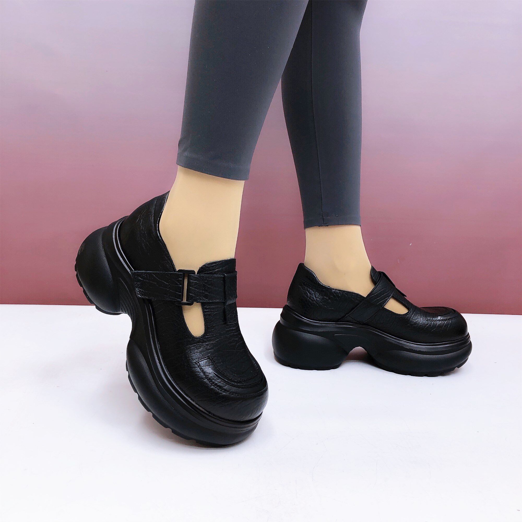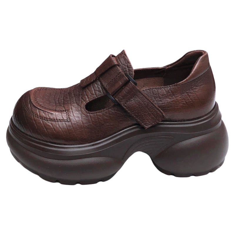 📚 松糕厚底真皮乐福鞋女2025新款头层牛皮单鞋轻便增高英伦风小皮鞋