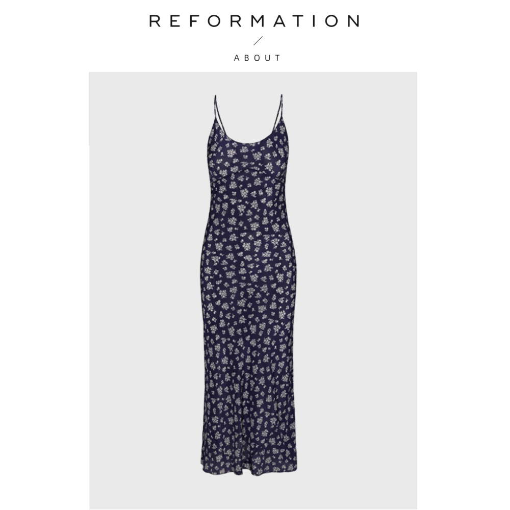 📚 【现货】About Reformation低胸真丝吊带斜裁长款露背连衣裙法式