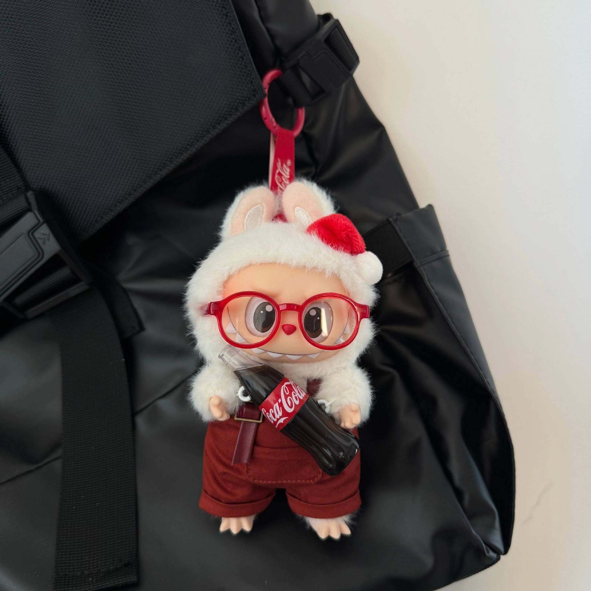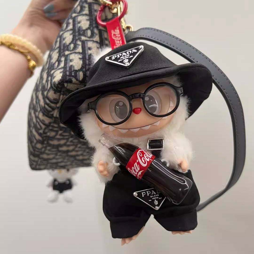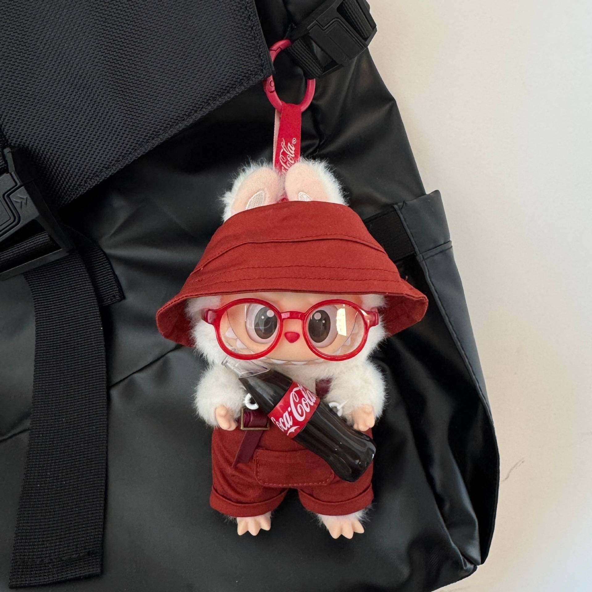 📚 惊喜特摇labubu娃衣三代不拆可乐拉布布搪胶17cm15公仔衣服背带裤