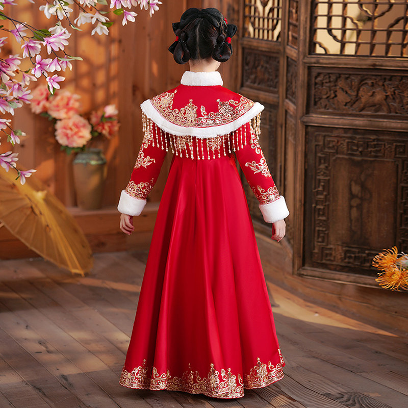 📚 汉服女童冬装2025新款儿童拜年服公主裙冬季加绒连衣裙秋冬款裙子