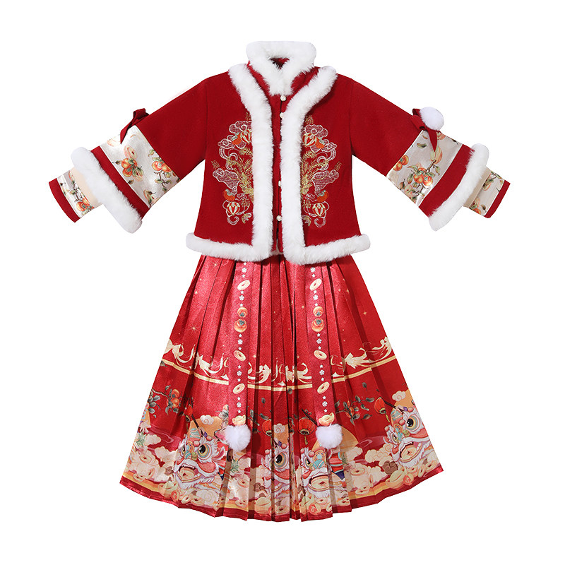 📚 马面裙女童拜年服冬款2025新款儿童汉服冬季喜庆风过年服冬装加绒