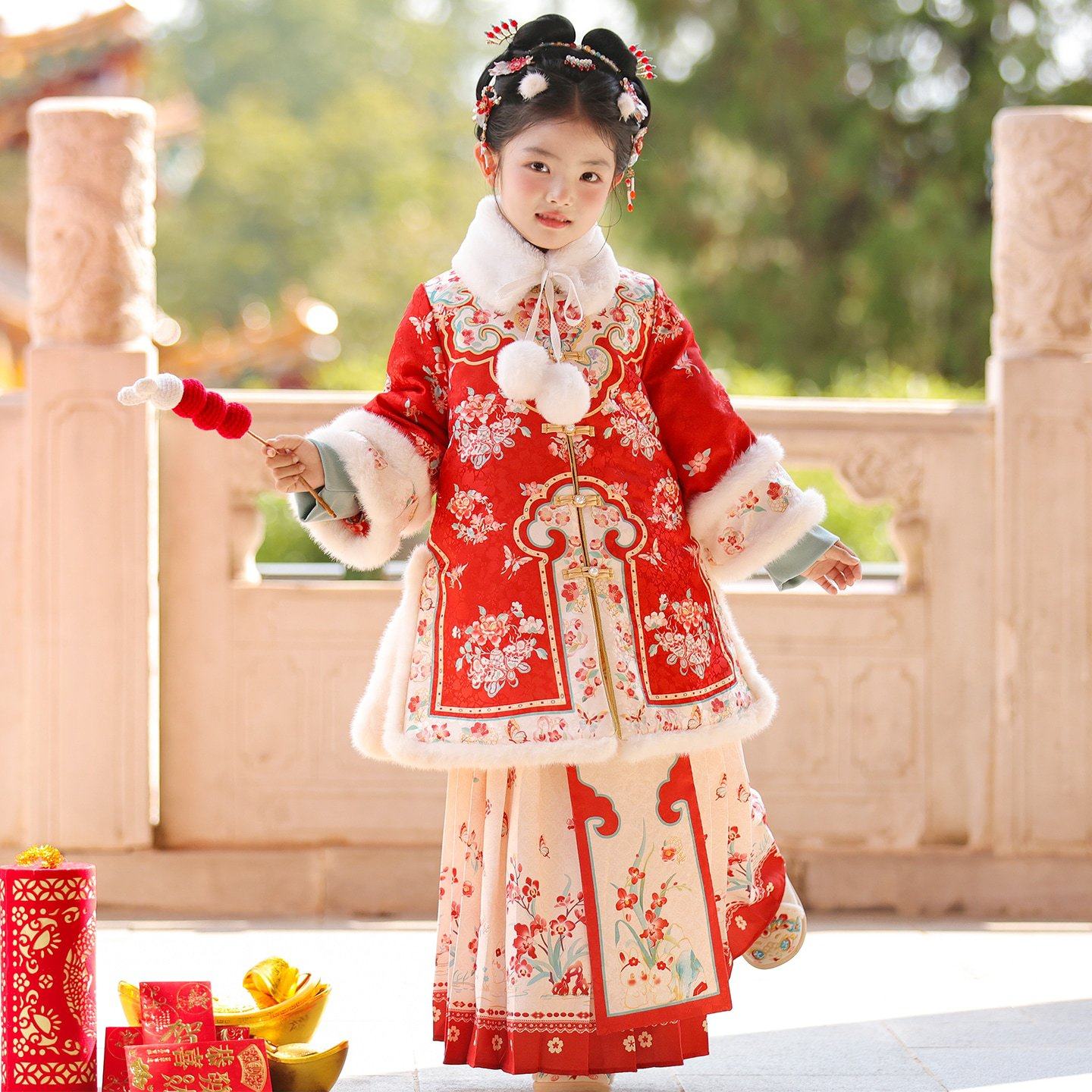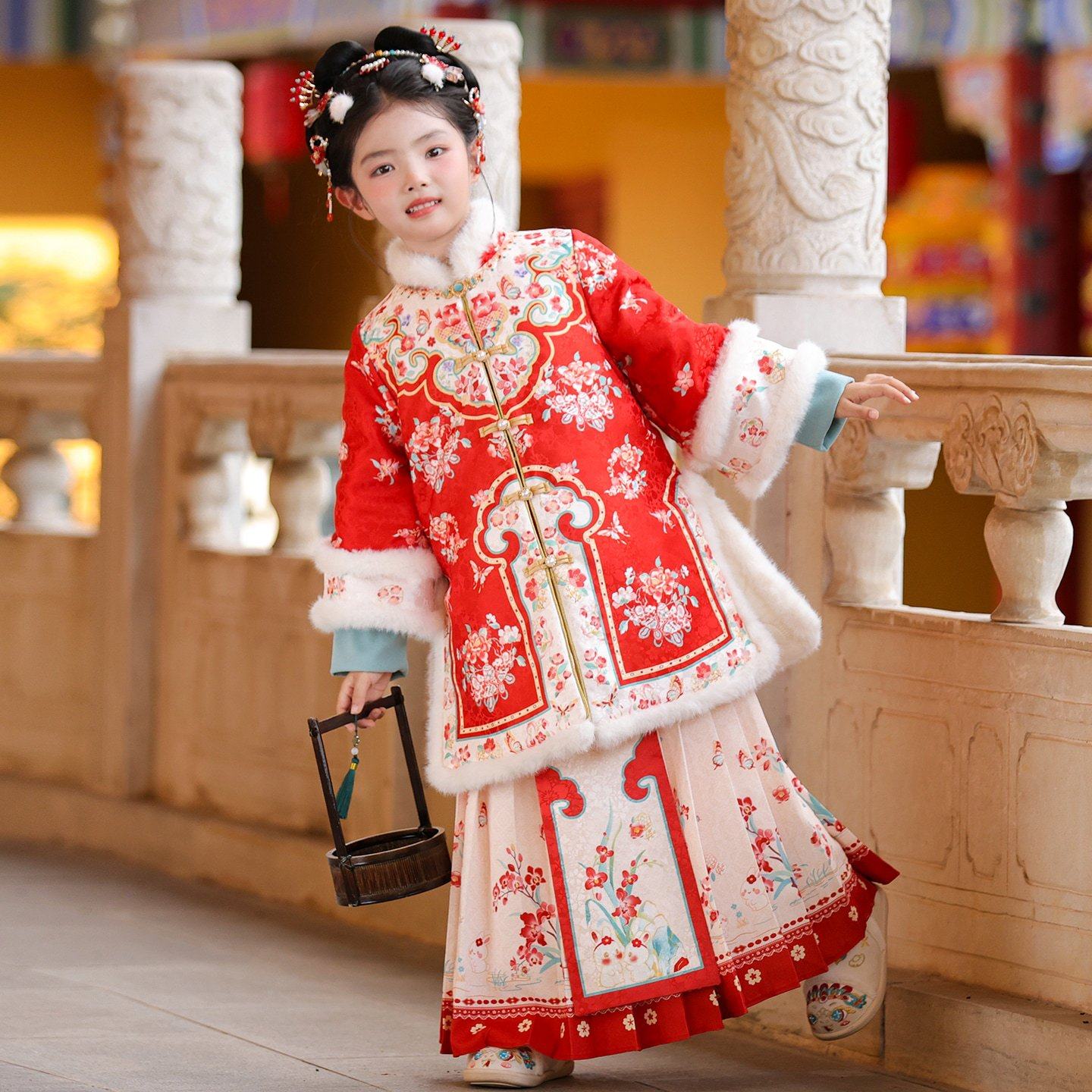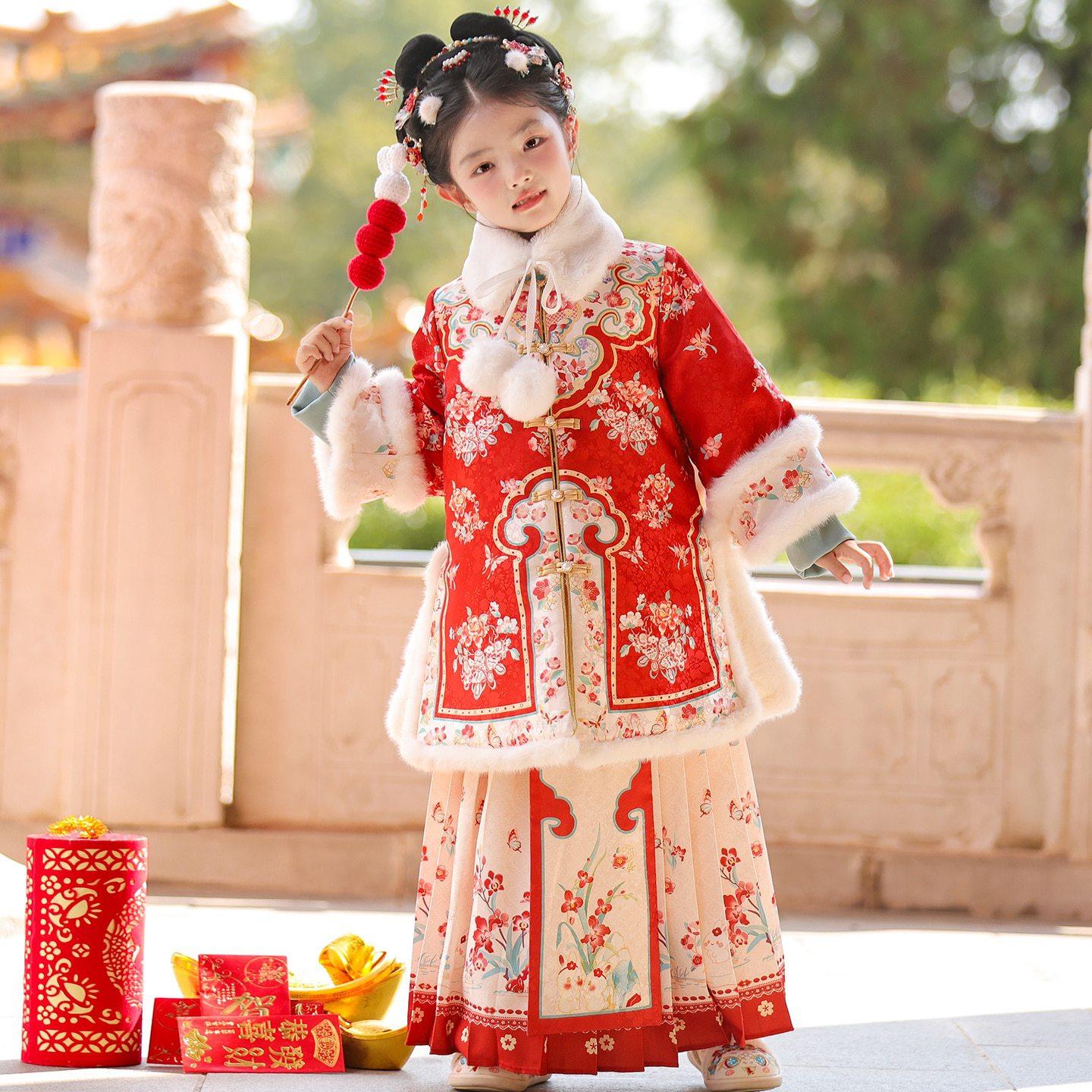 📚 汉服女童冬装2025新款加厚儿童马面裙拜年服小女孩格格服新年唐装