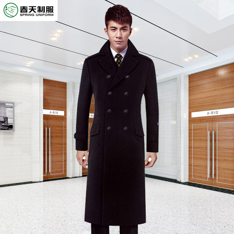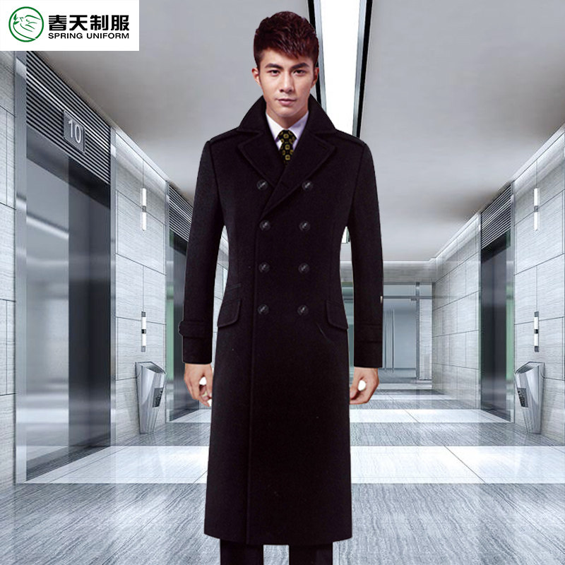 📚 酒店礼宾行李员售楼处物业保安男大衣工作服冬季黑色羊毛呢子外套