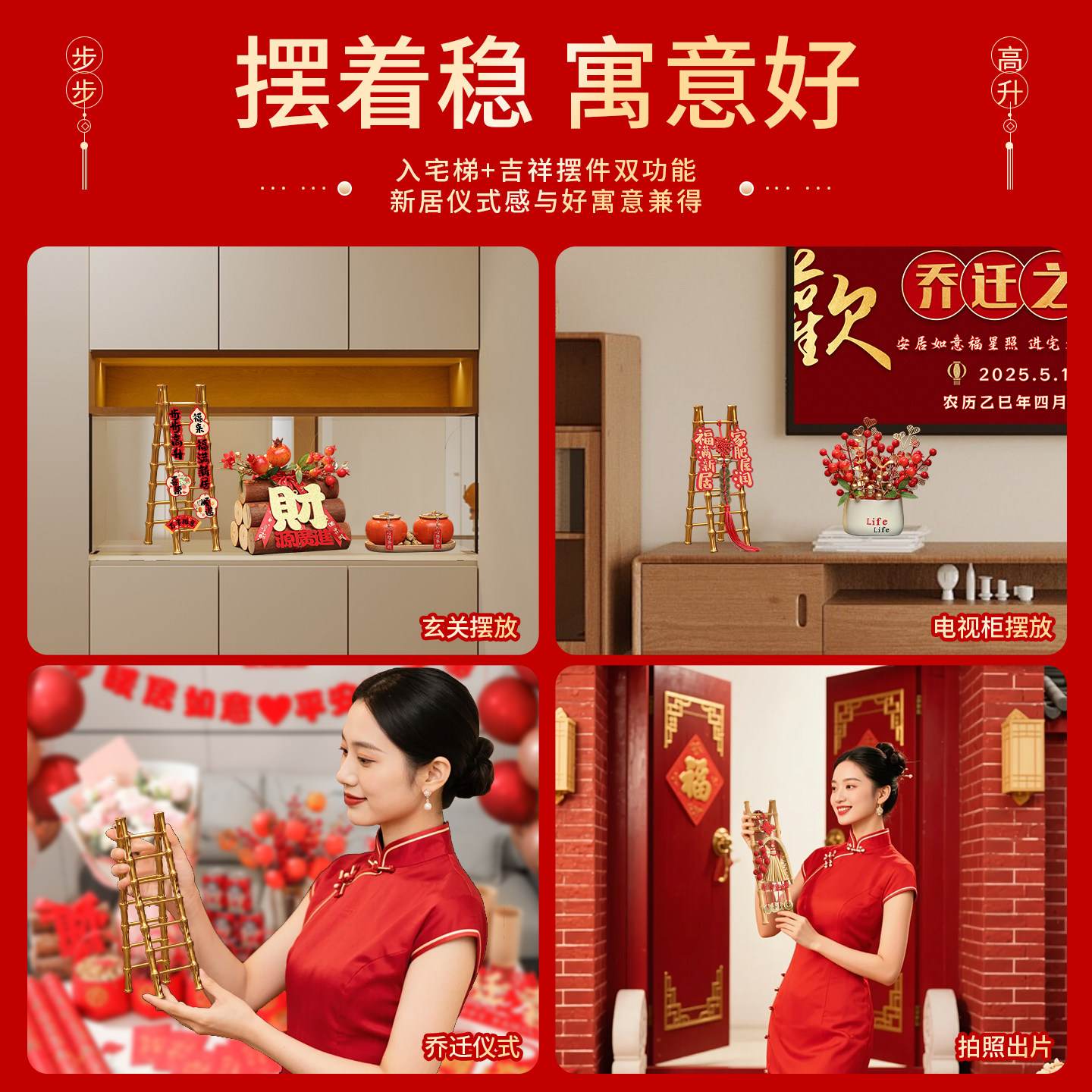 📚 乔迁之喜装饰步步高升梯子玄关布置新居入宅用品必备摆件礼物全套
