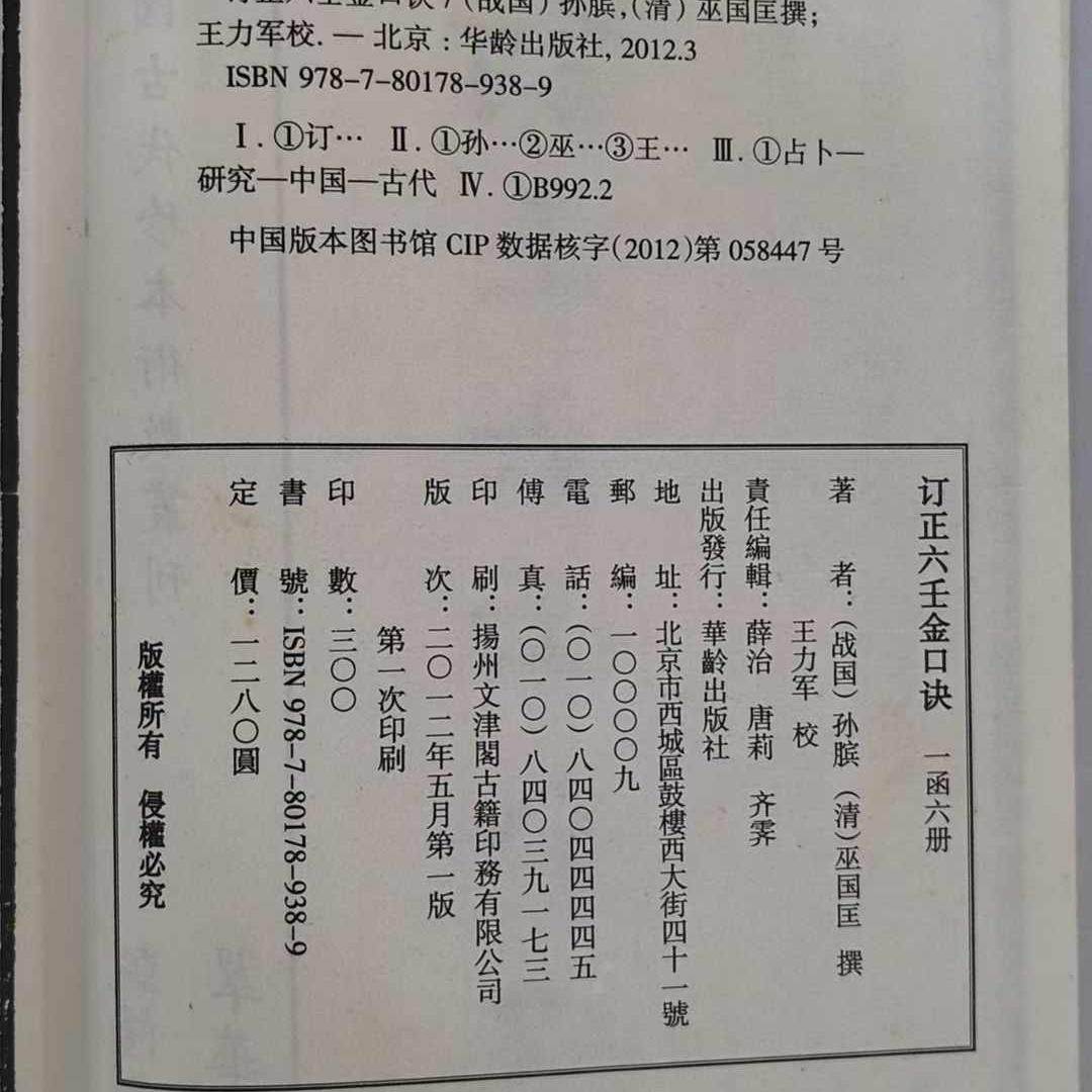 📚 订正六壬金口诀宣纸线装精工影印一函六册战国孙膑撰清巫国匡辑王力军校订课铃二卷广云子断案一卷中国古代文化与民俗学研究