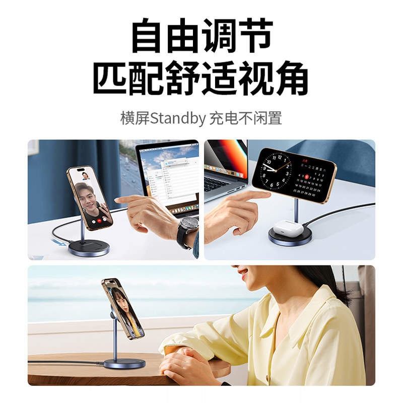 📚 绿联magsafe磁吸无线充电器适用于17promax充电底座16手机iPhone15桌面airpods4/3耳机二合一20w立式magsafe