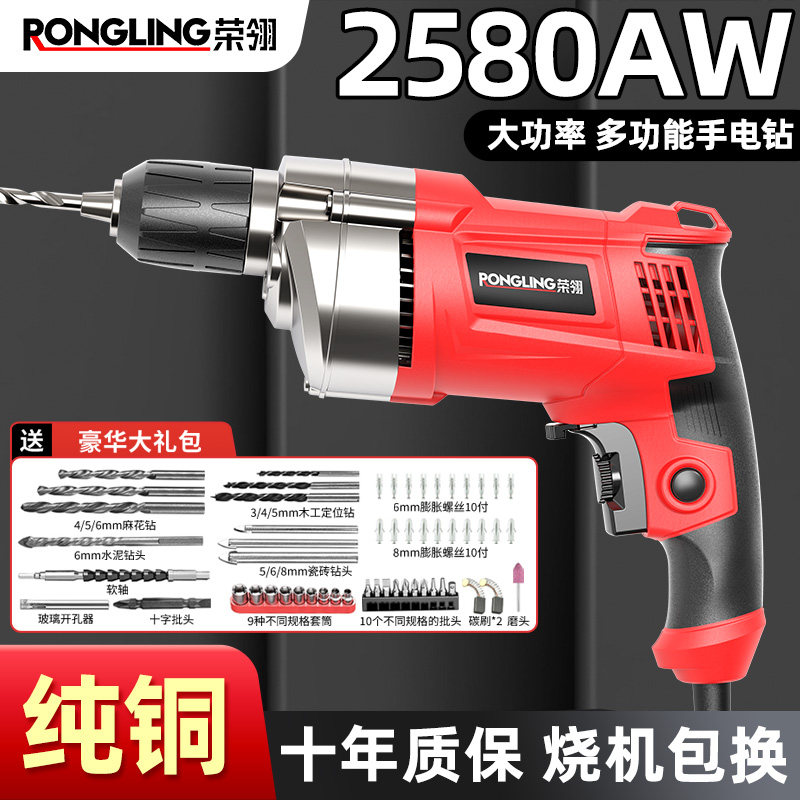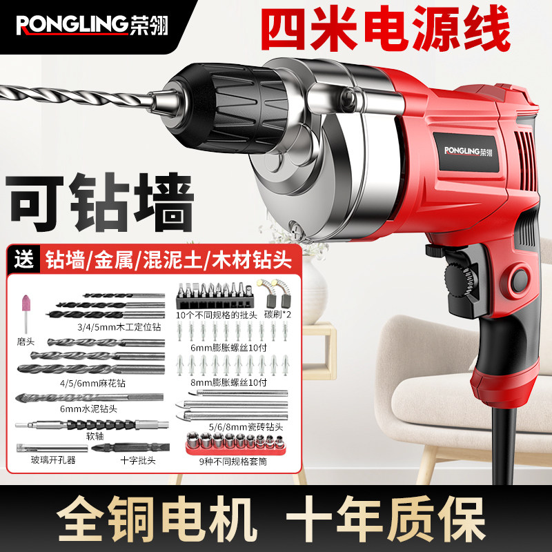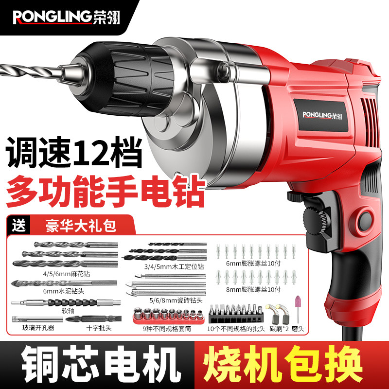 📚 手电钻多功能电转电动工具家用小电手钻打孔交流手枪钻带有线220V