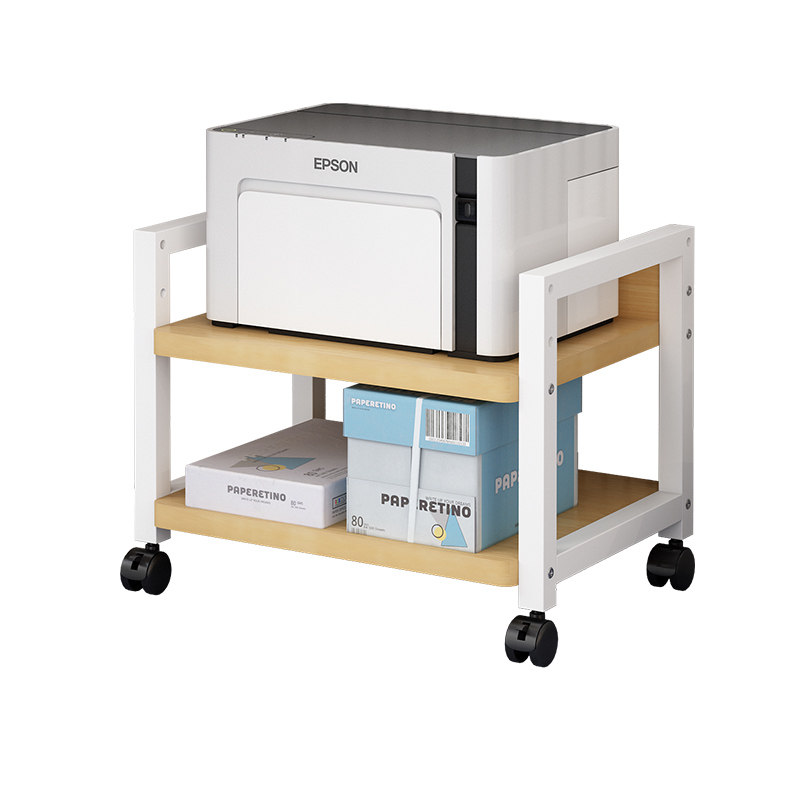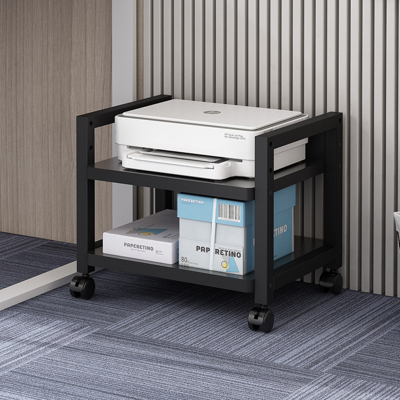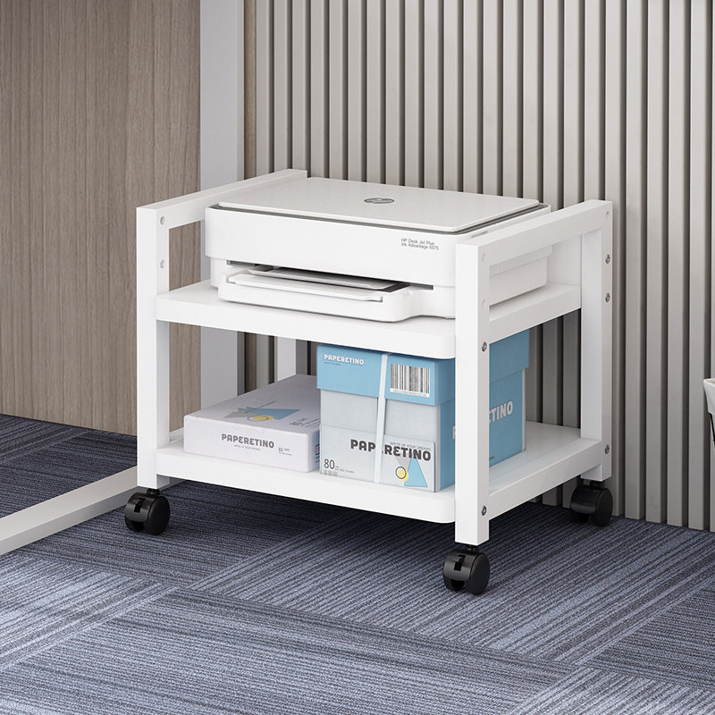 📚 办公室双层落地打印机置物架书房桌下带轱辘可移动可调节高度架子