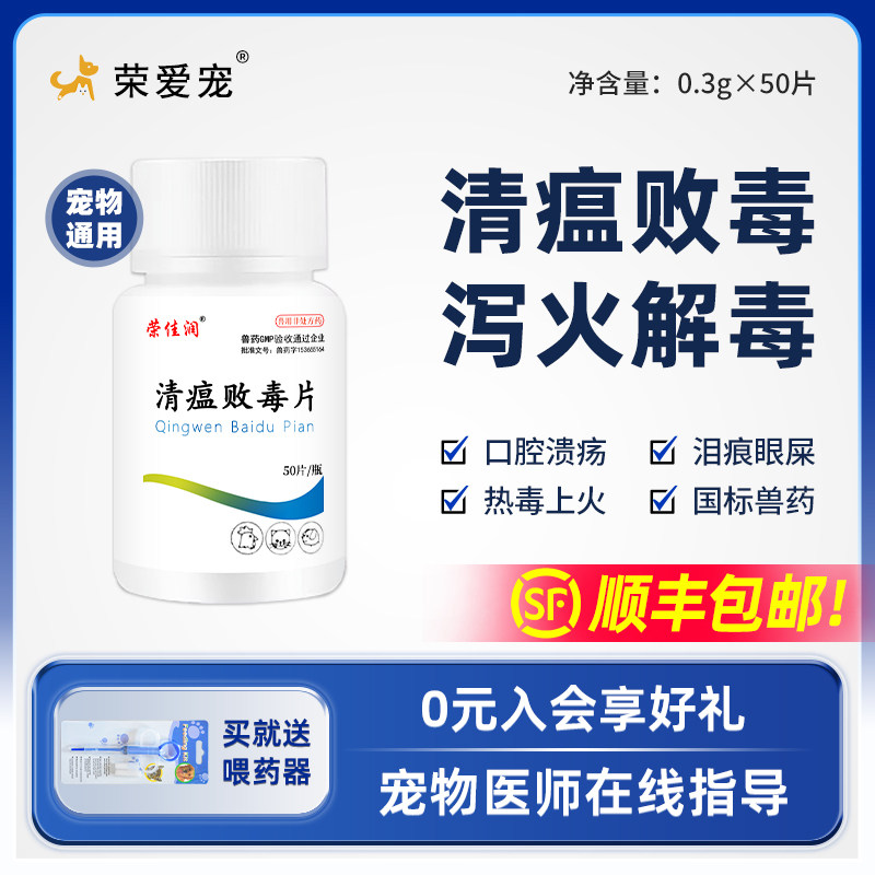 📚 宠物用清瘟败毒片狗狗犬猫咪口炎药眼屎多流泪痕尿黄口臭便秘通便