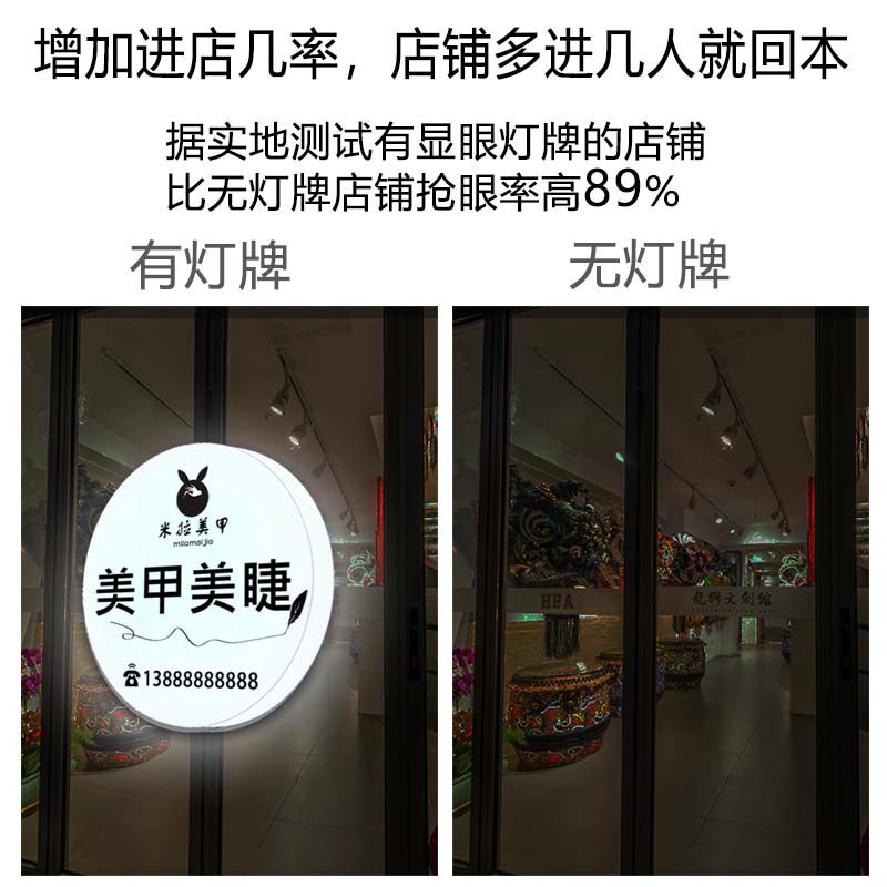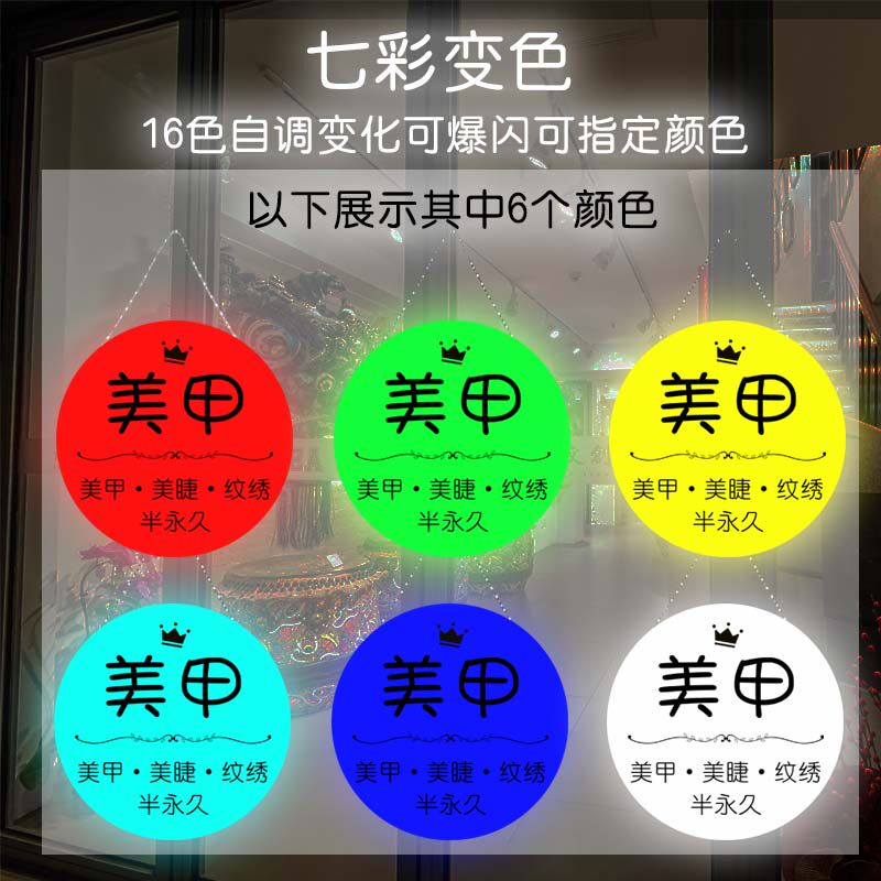 📚 创意发光灯牌圆形招牌定做美容美甲美睫悬挂广告牌挂墙式挂牌定制