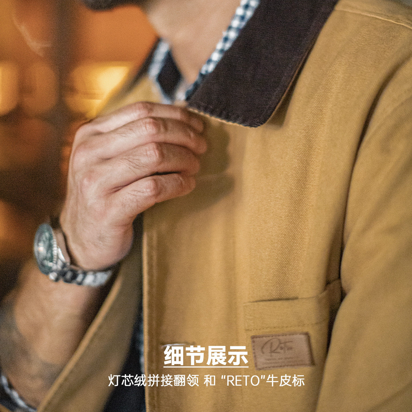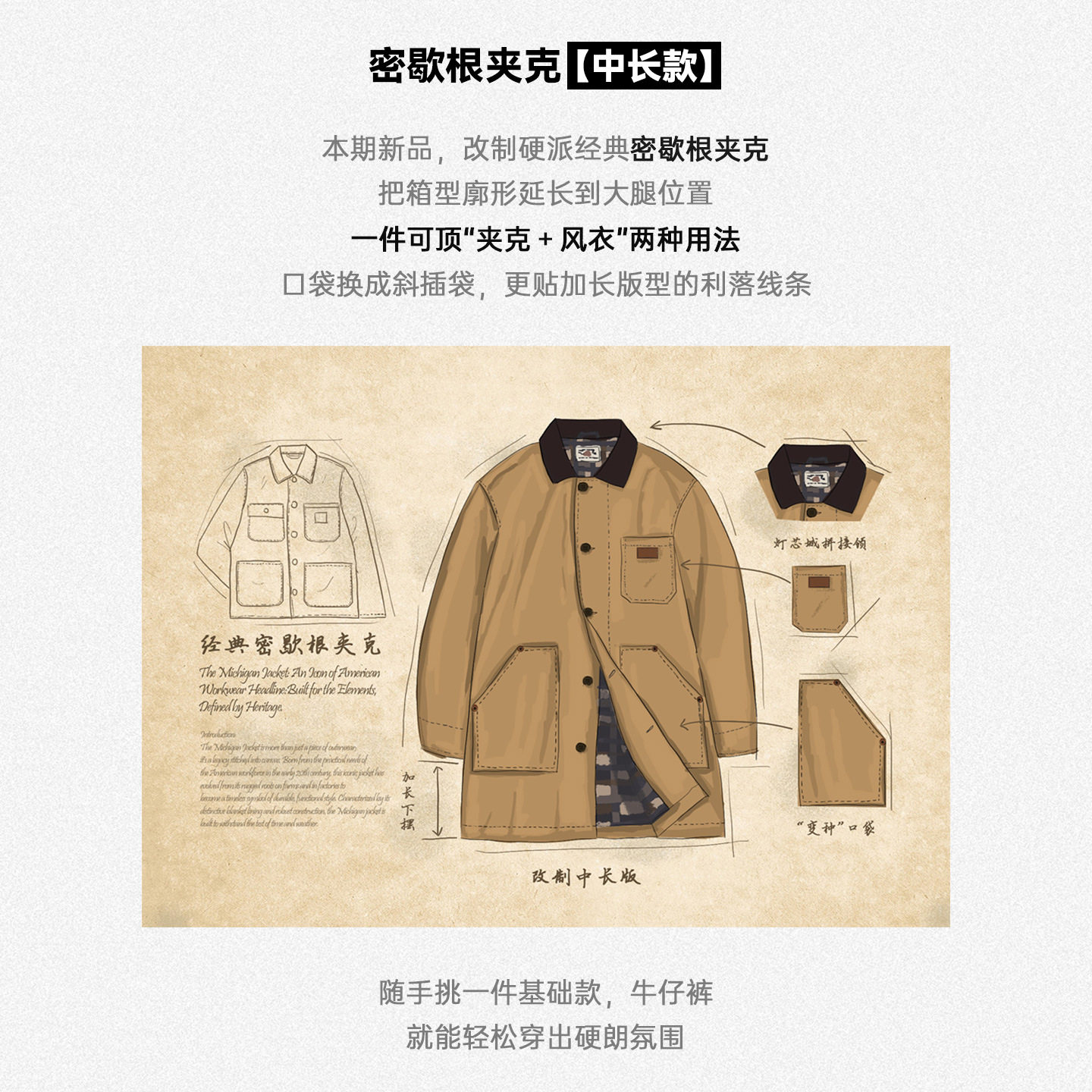 📚 马登工装美式复古密歇根风衣卡其色巴恩风中长款廓形夹克外套男秋
