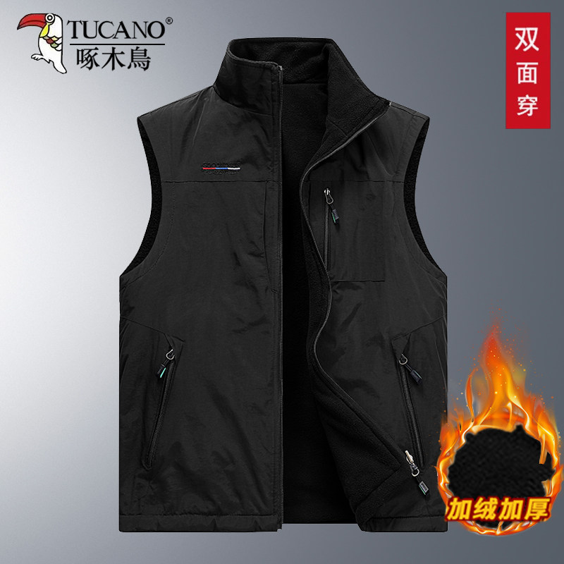 📚 啄木鸟双面穿马甲男士秋冬季加绒加厚摇粒绒背心中年爸爸坎肩外套