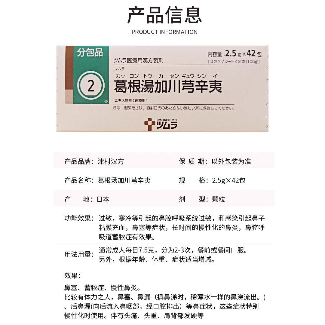 📚 日本津村汉方葛根汤加川芎辛夷颗粒冲剂中成药鼻塞不通慢性鼻炎药