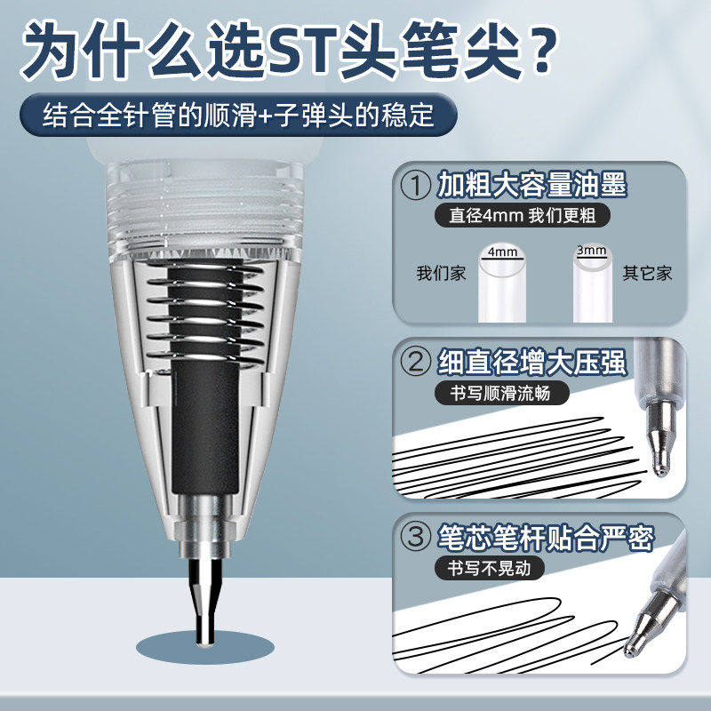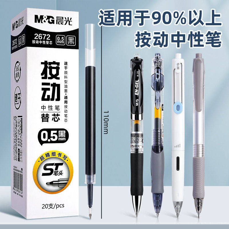 📚 晨光按动笔芯st笔芯速干0.5mm黑色中性笔顺滑2672大容量按动式子弹头针管头刷题圆珠笔芯替换芯学生双珠实用