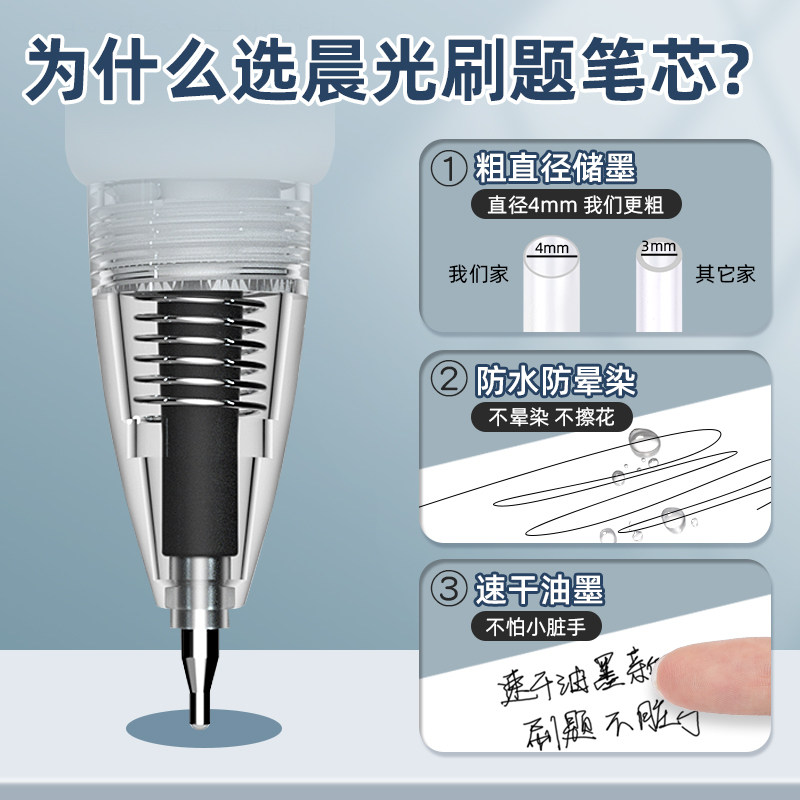 📚 晨光st笔芯按动笔芯st头速干0.5mm黑色中性笔笔芯顺滑2672刷题笔芯替换芯大容量子弹头全针管头学生考试专用