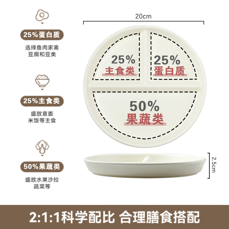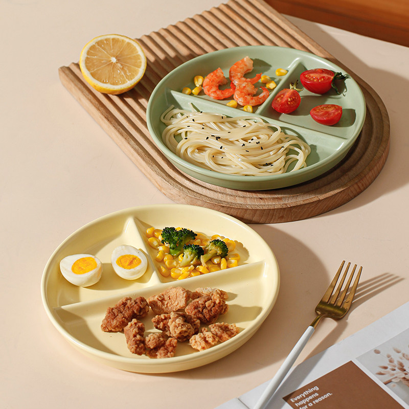 📚 陶瓷分格餐盘211减脂餐盘家用一人食早餐盘减肥饭盒定量分隔盘子
