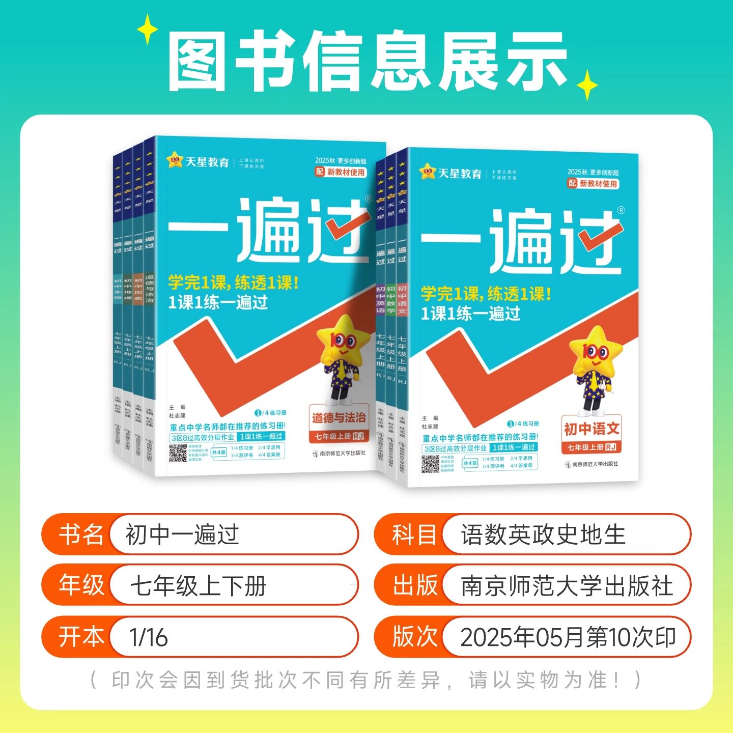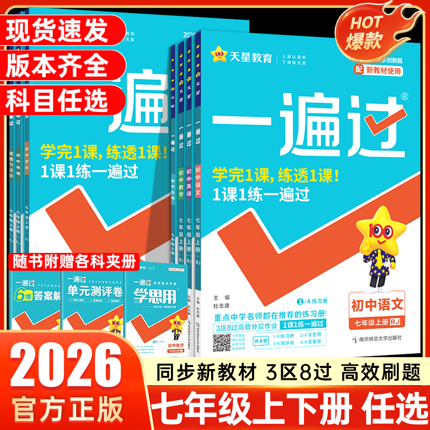 📚 2026一遍过初中同步练习册七年级上册下册语文数学北师大华师版英语政治历史地理湘教版生物人教版一遍过7年级上下册同步习题天星