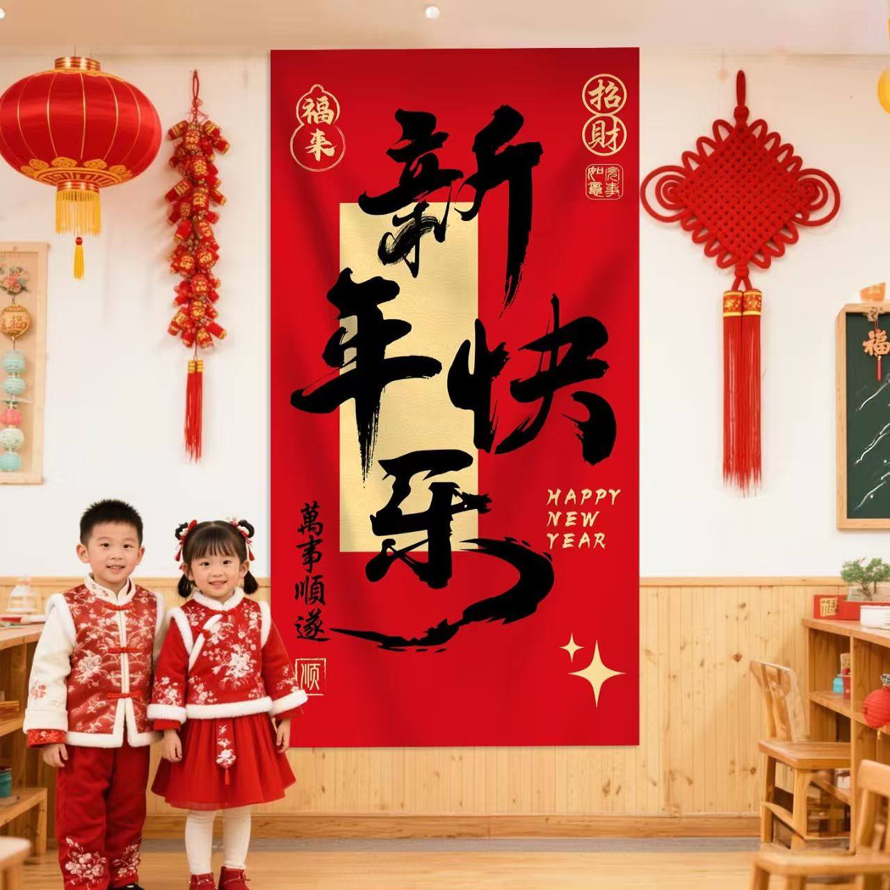 🎁首先推荐的当然是这款幼儿园元旦装饰品马年氛围场景布置。挂布采用环保材料,色彩鲜艳,图案设计独特,一看就让人爱不释手。它的存在让整个教室瞬间焕发出生机与活力,仿佛走进了一个充满马年元素的童话世界。