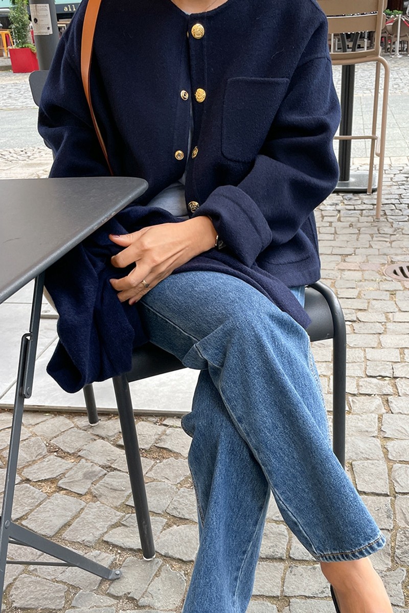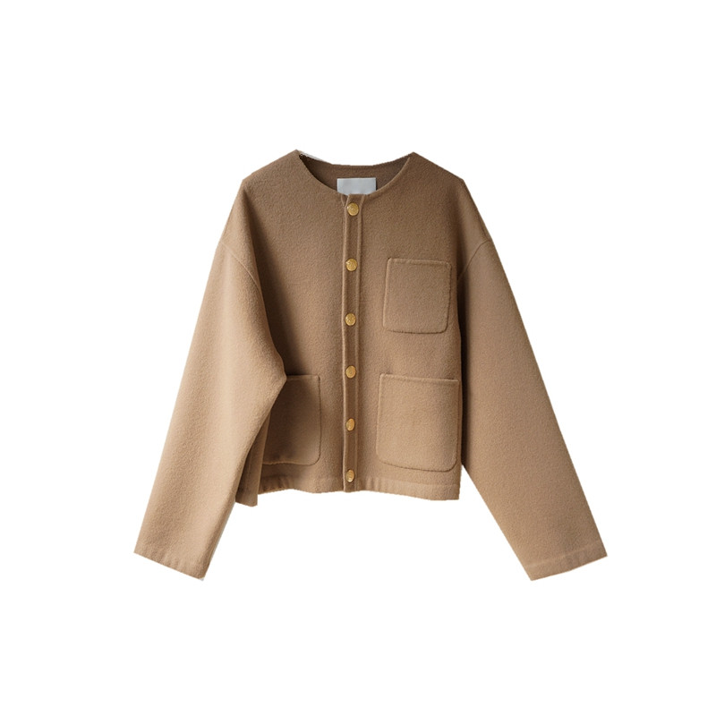 📚 D46韩国女装双面羊绒毛呢手工制短款金扣小香风外套handmade