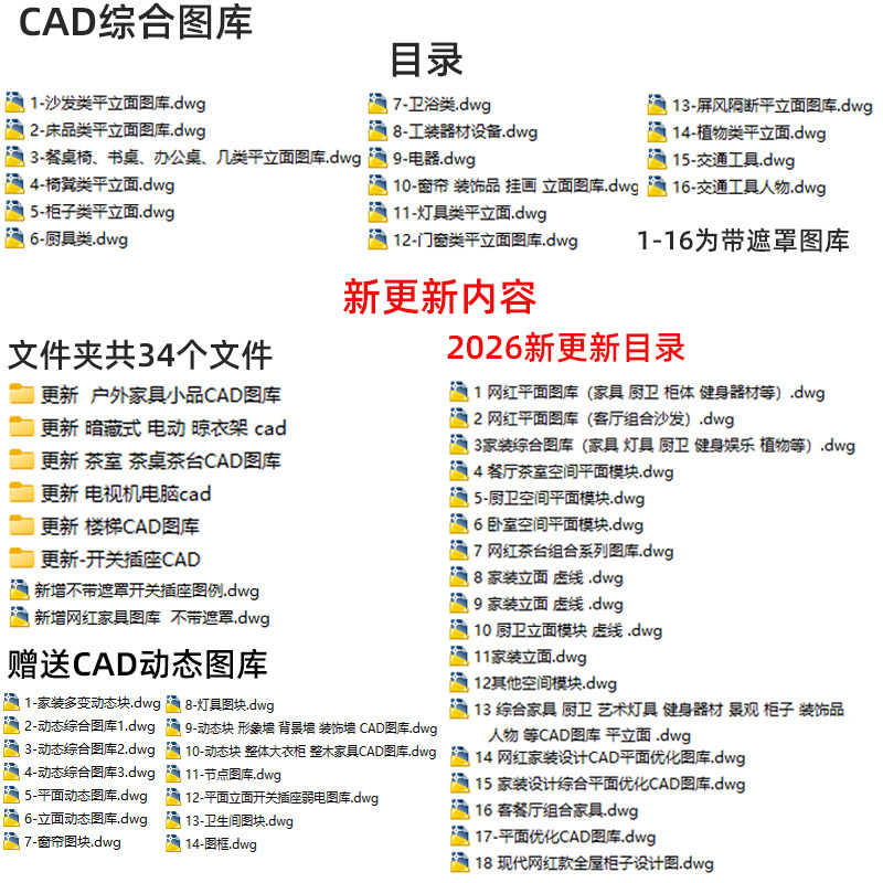 💥惊艳!2026新出CAD图库素材,室内设计家工装家具全掌握💥