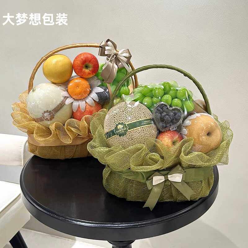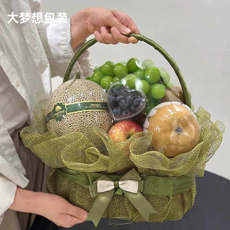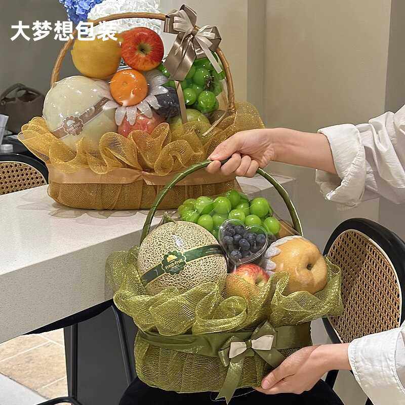 📚 中秋节秋高档木编手提水果竹篮节日拜访送礼糕点花篮网纱包装礼篮
