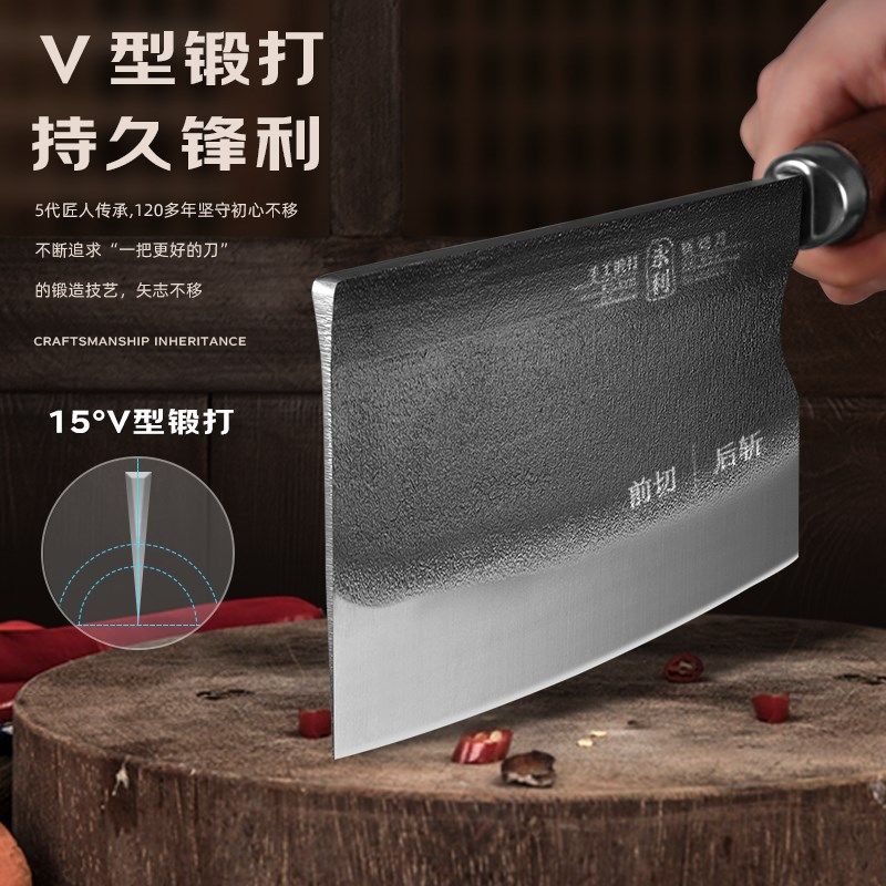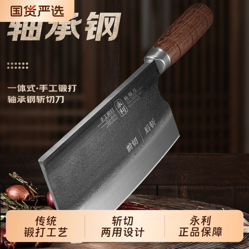 📚 永利轴承钢老式手工锻打家用斩切刀商用烧腊大排档菜刀两用斩切片