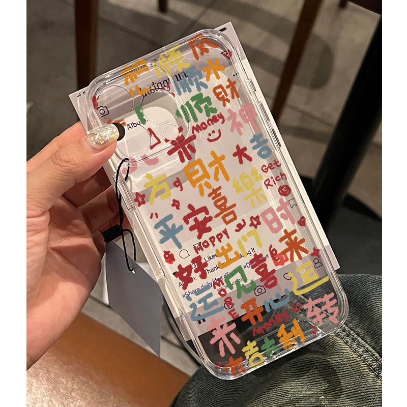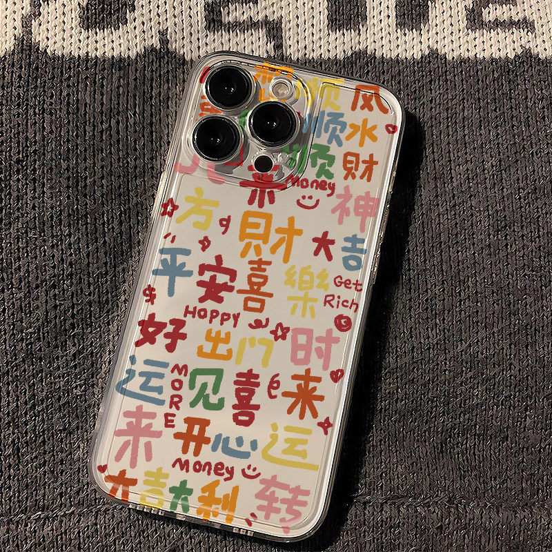 📚 彩色平安喜乐适用iphone17promax苹果14/13/12/11手机壳暴富华为mate70新年oppp/vivos16荣耀小米15红米k60套