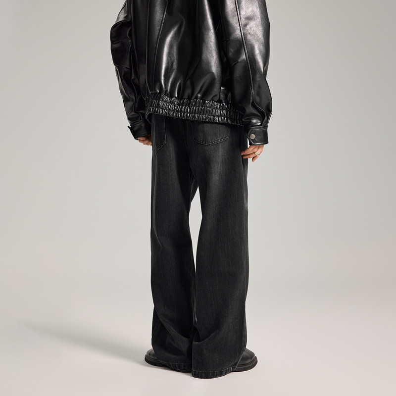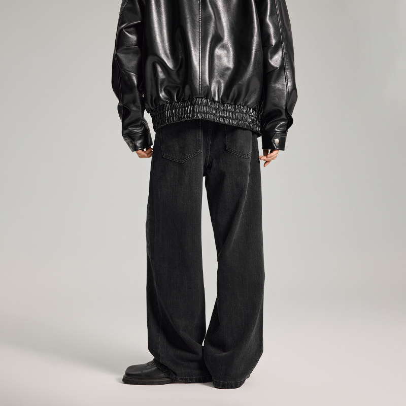 📚 RHRB男士直筒阔腿黑色牛仔裤男款夏季薄款美式高街黑牛宽松长裤子